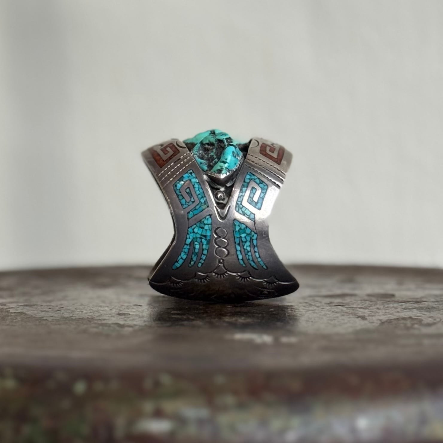 裏側に「TA」と刻印がはいっており、おそらくナバホ族のアーティストだと思われます。