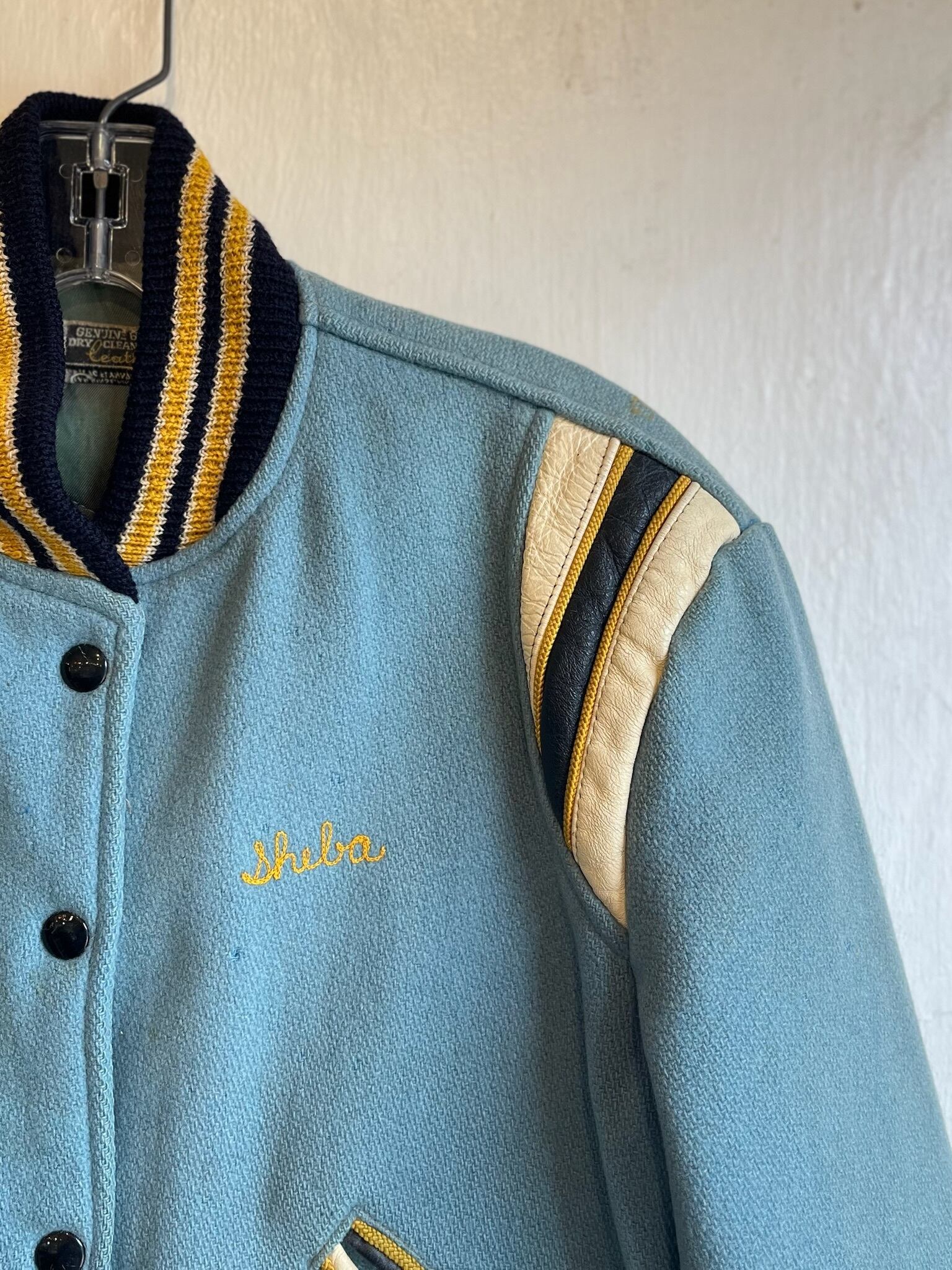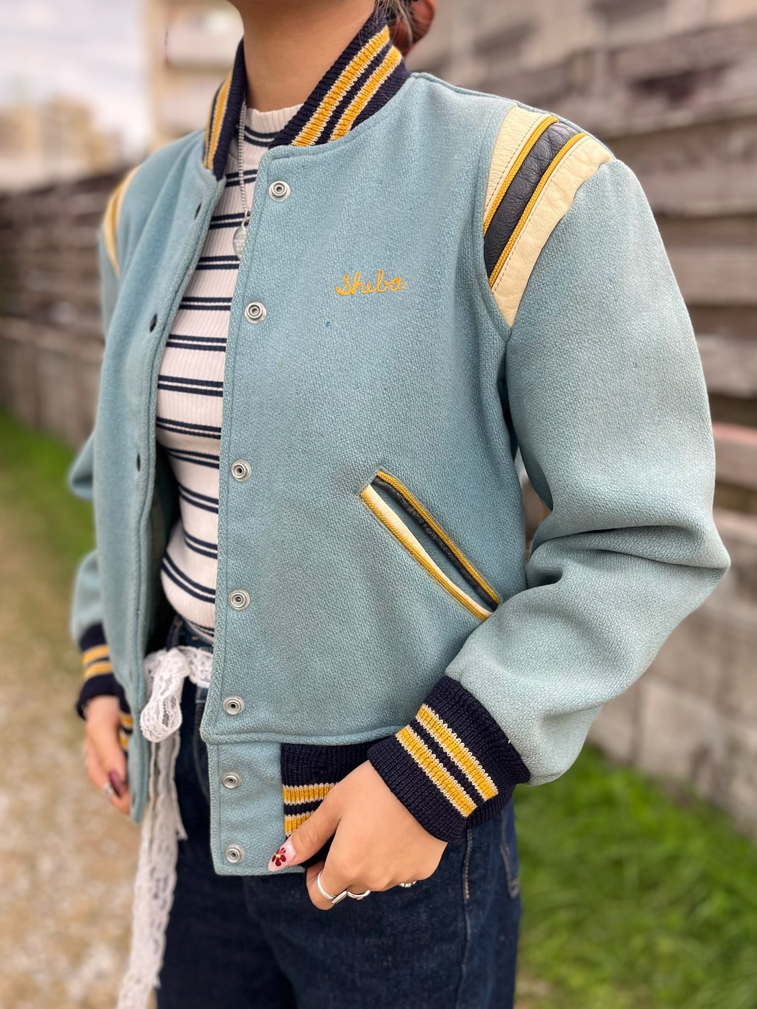 胸元には"Shiba"という当時の持ち主であろう女性のネーム刺繍、バックには存在感のあるチェーン刺繍が施されています。