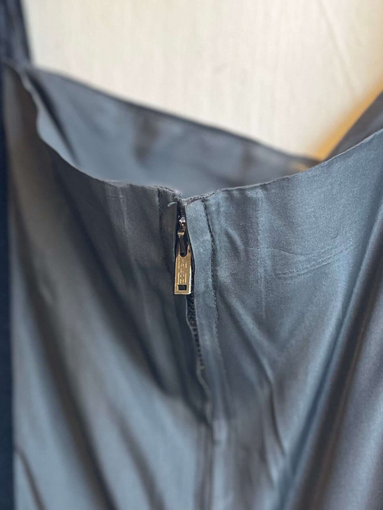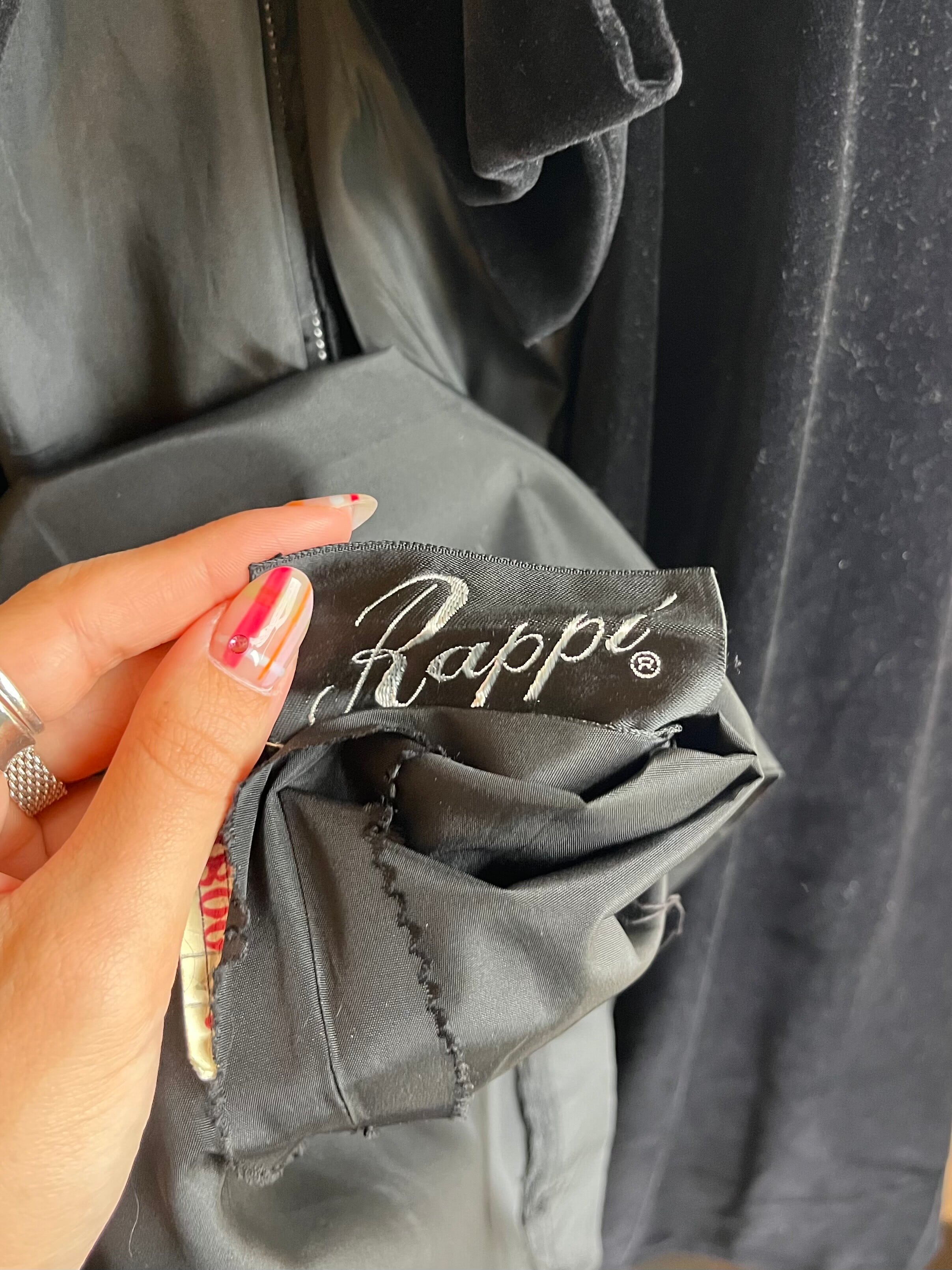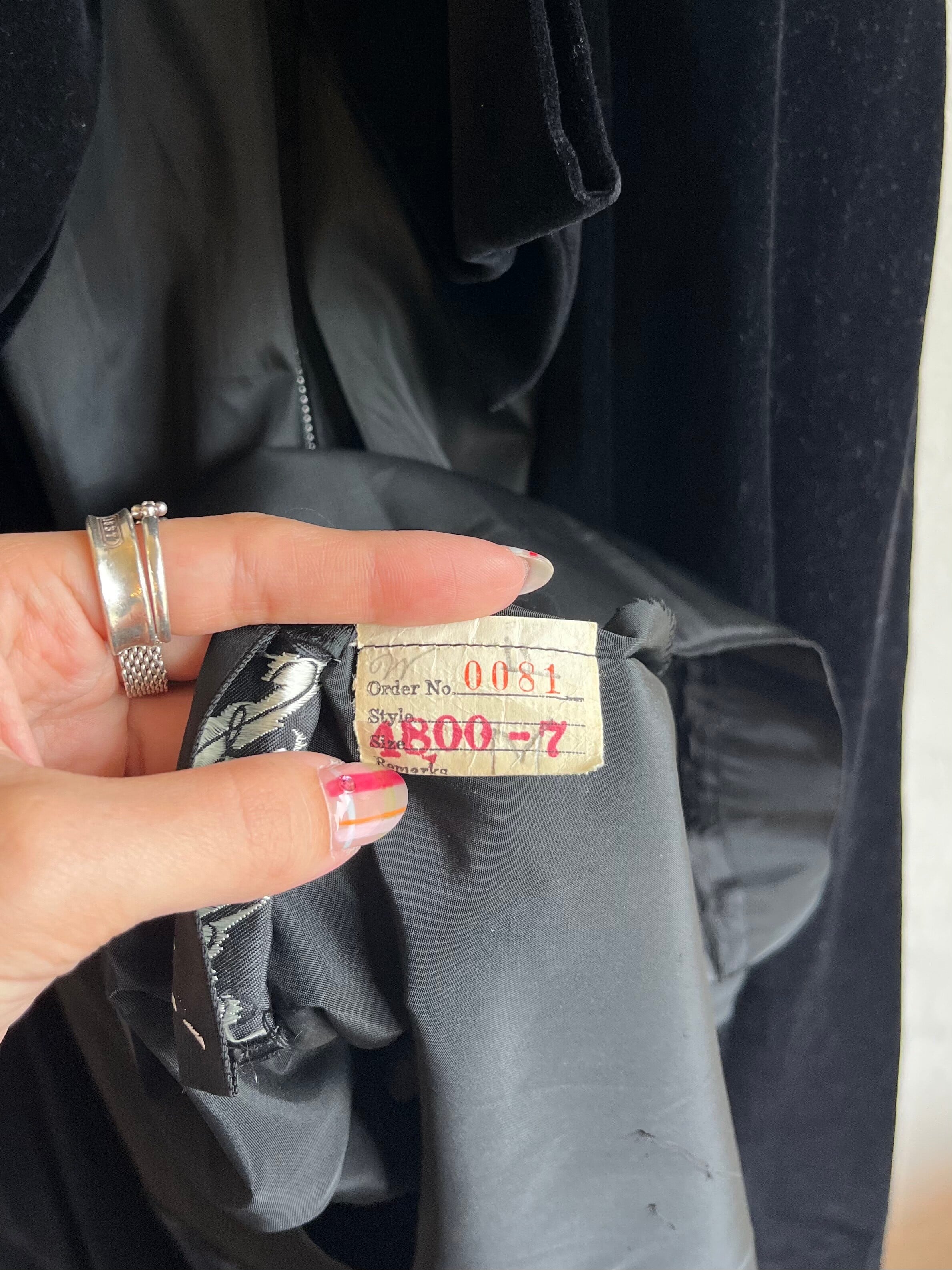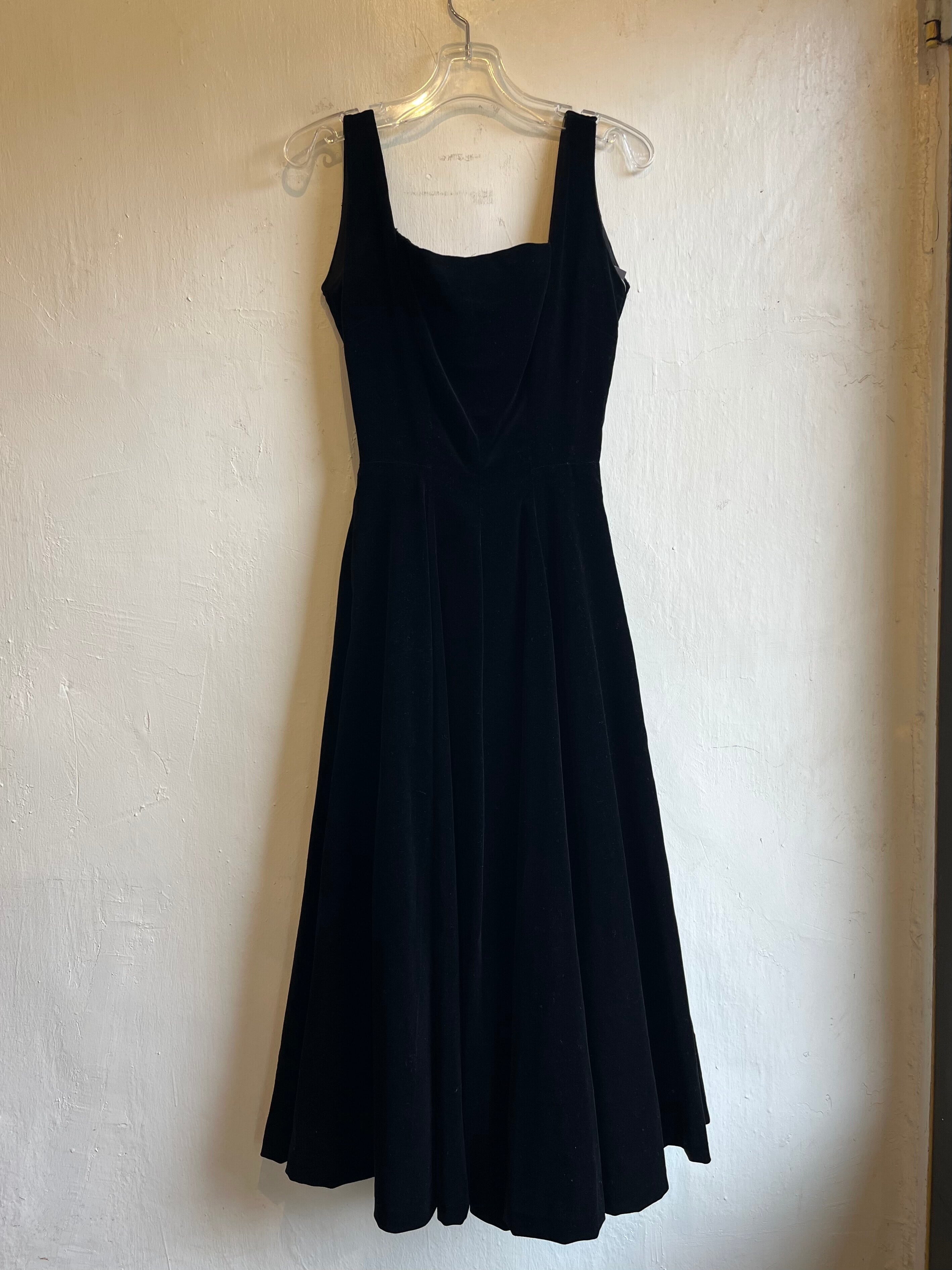 ベルベットとナイロンの2種の生地から作られており、バイカラーのような組み合わせで重すぎない印象となっており、背中の大きなリボンもドレスの存在感を惹き立たせてくれます。
