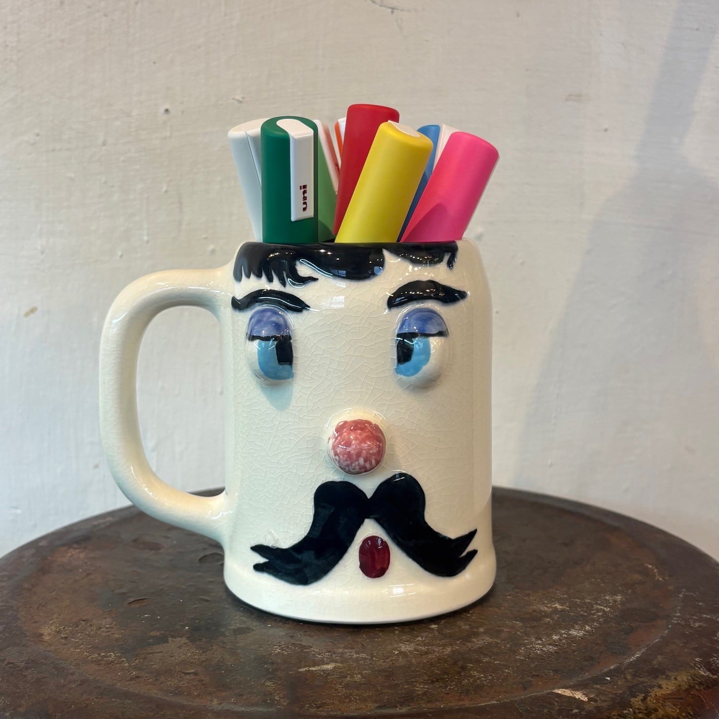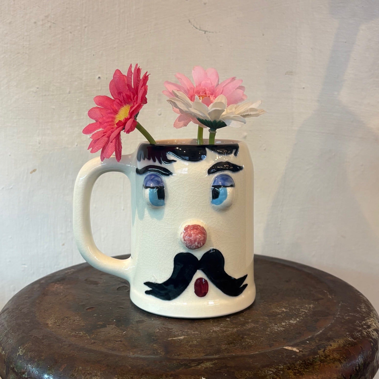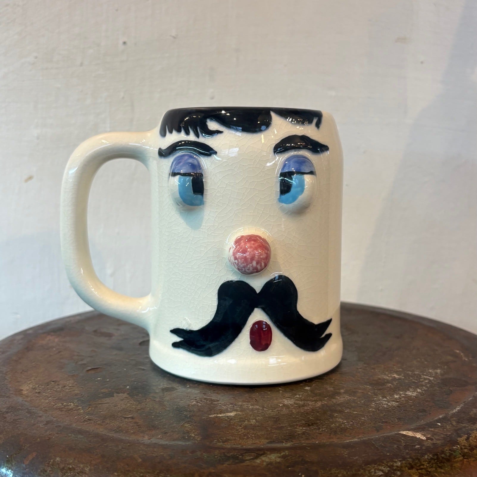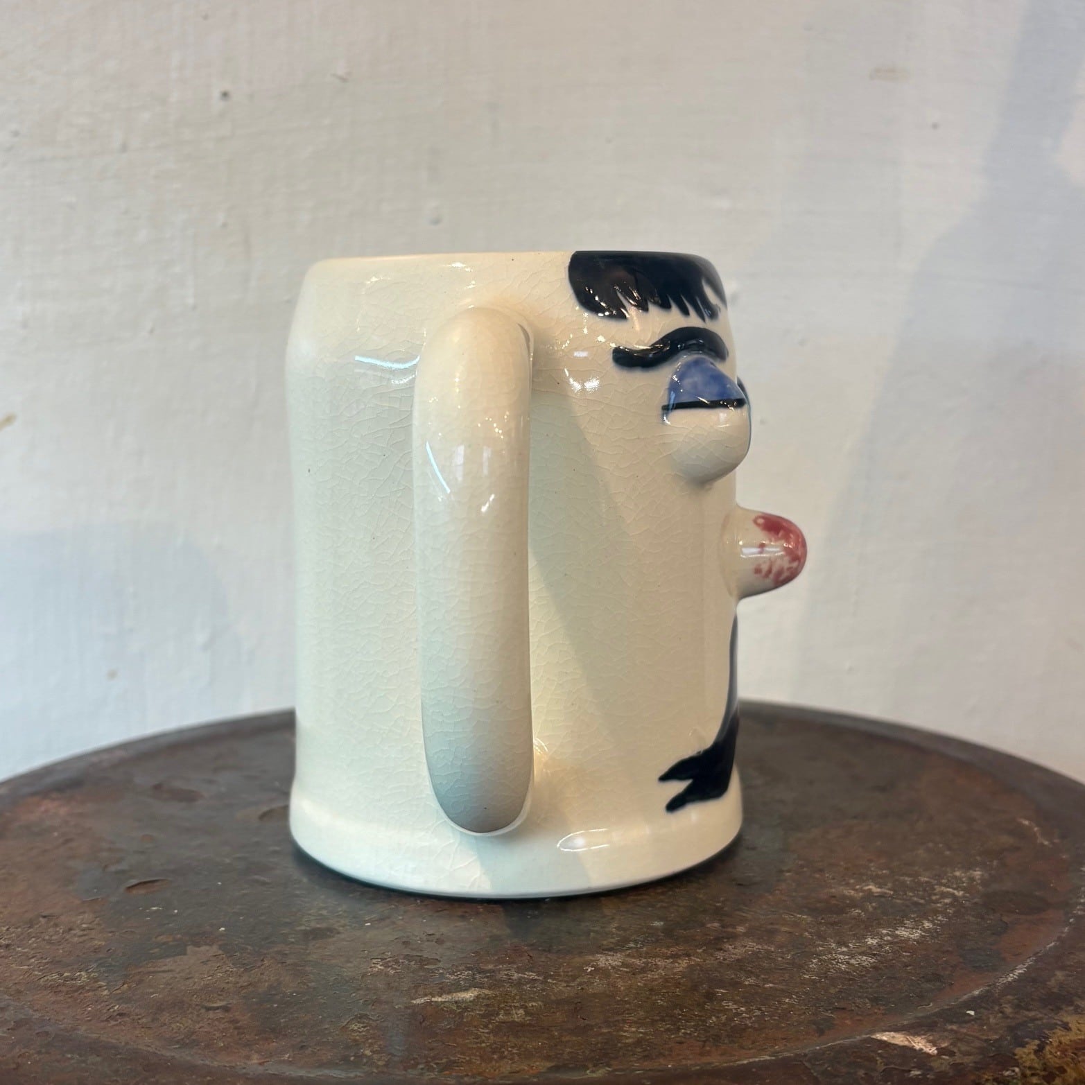 ハンドペイントで描かれた、どこか間の抜けた表情と立体的な造形でヴィンテージならではの個性が詰まったマグ。