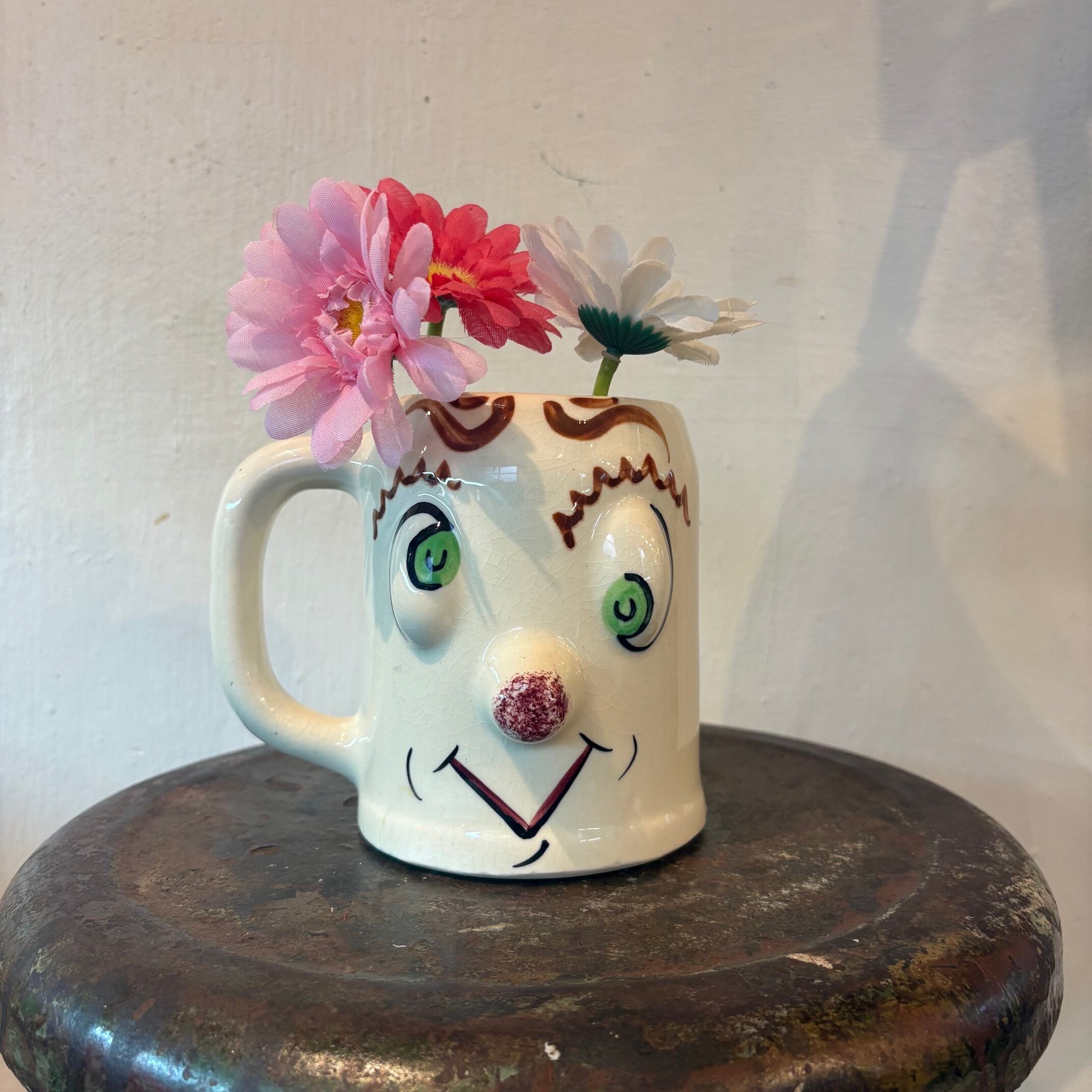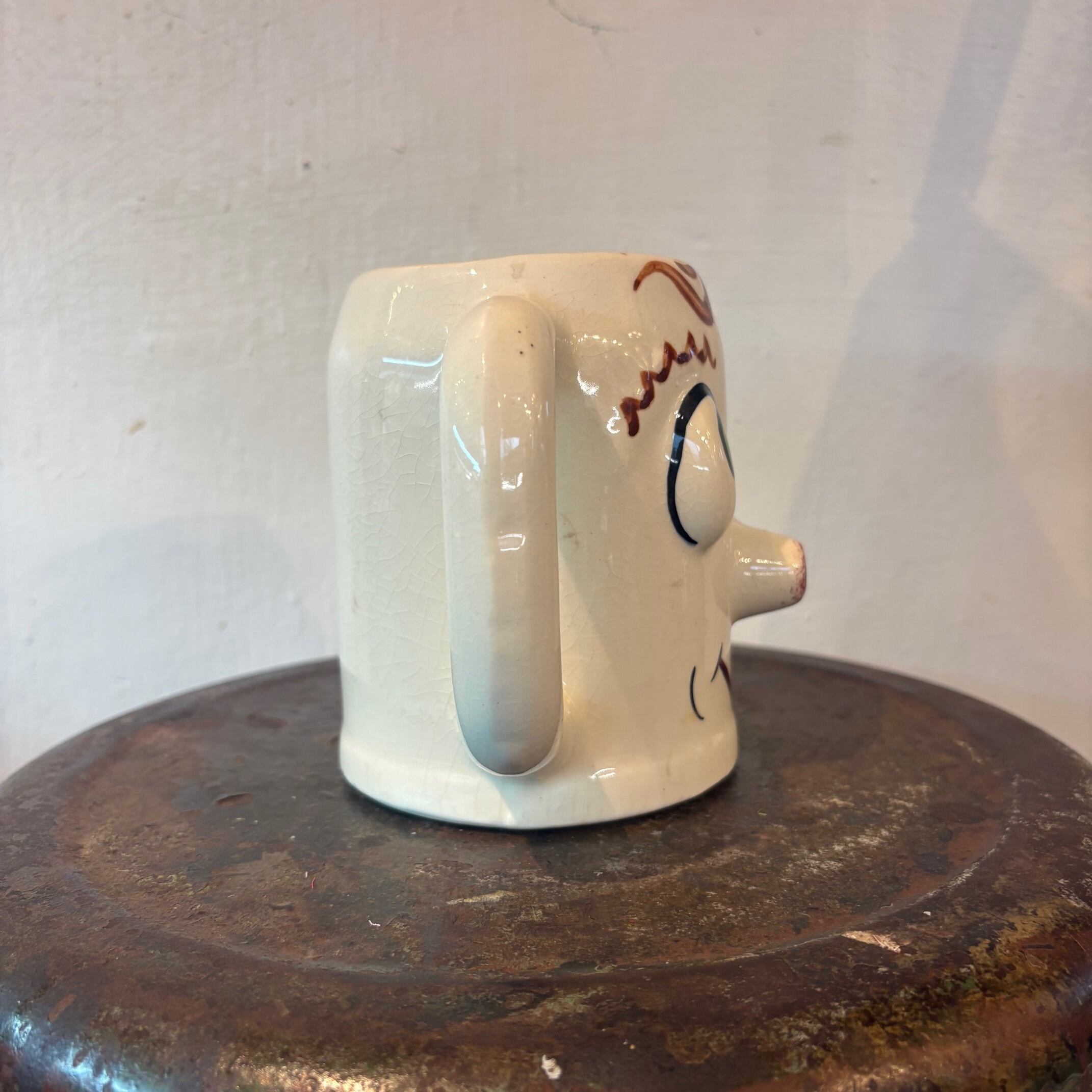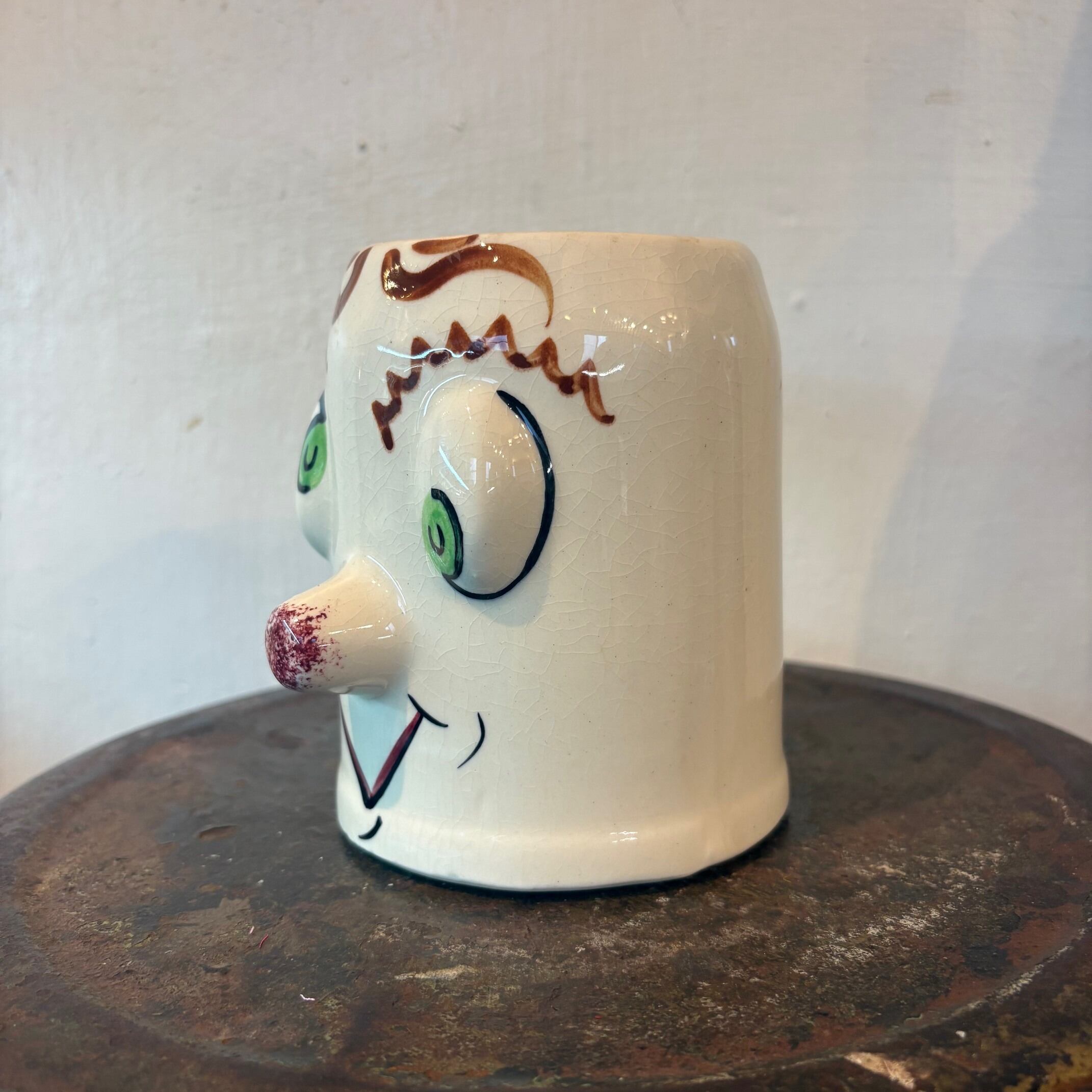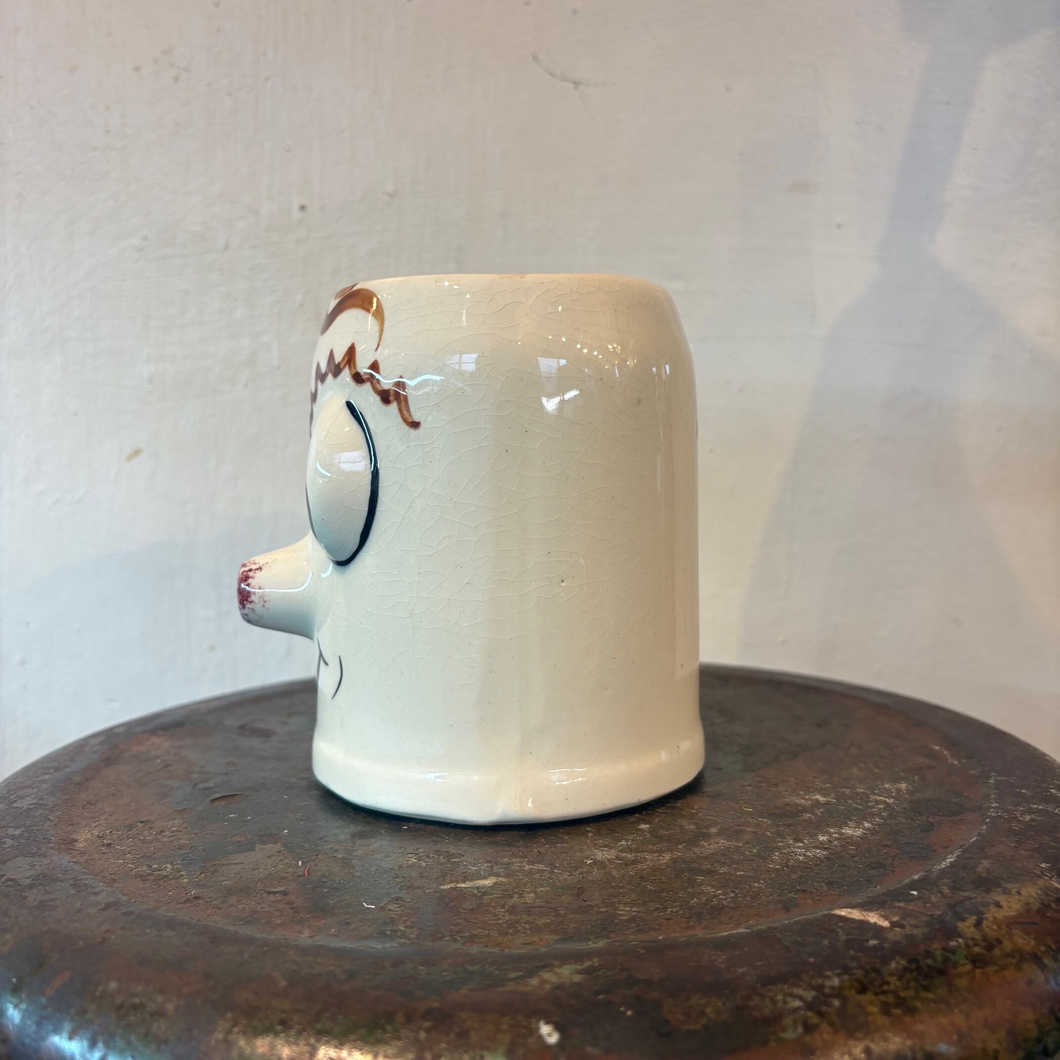 ハンドペイントで描かれた、どこか間の抜けた表情と立体的な造形でヴィンテージならではの個性が詰まったマグ。