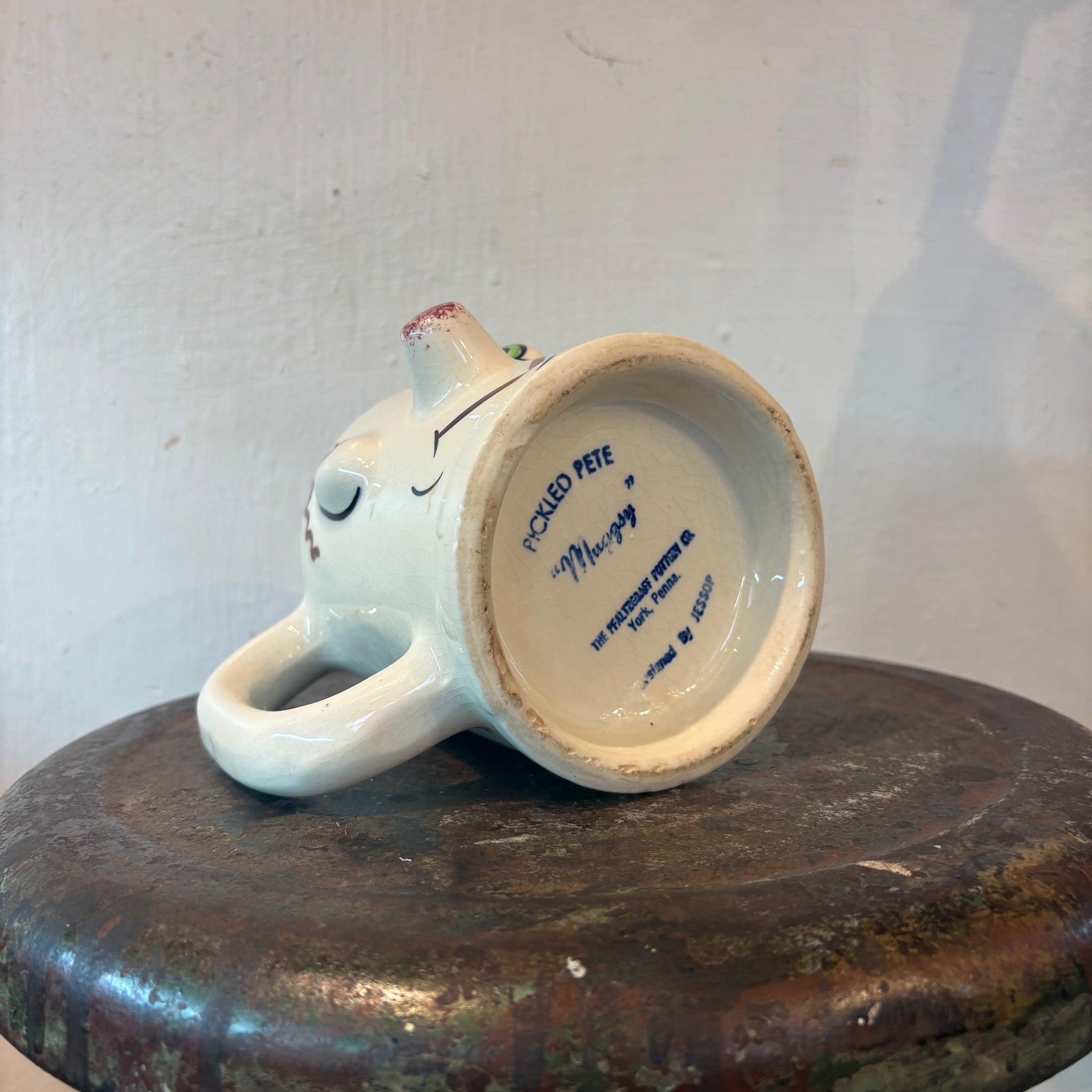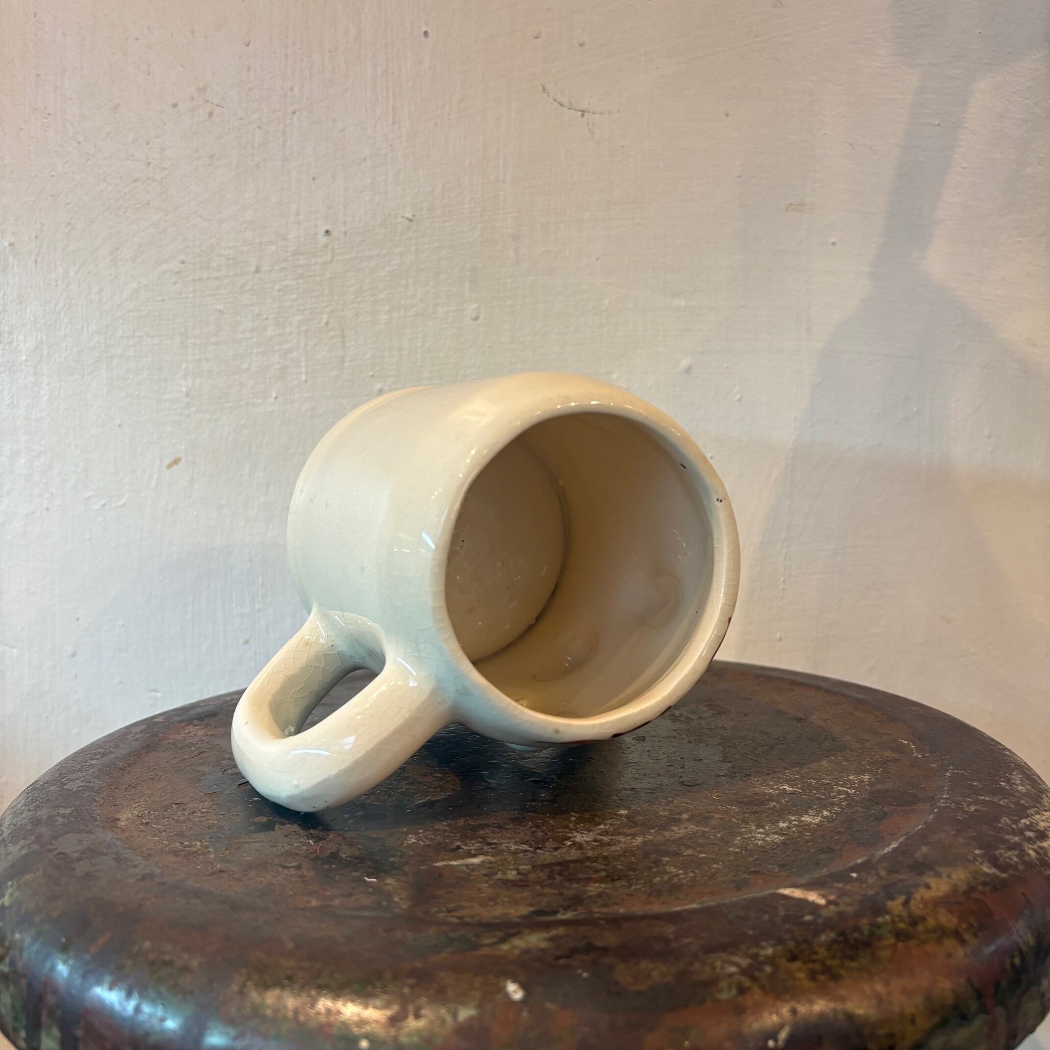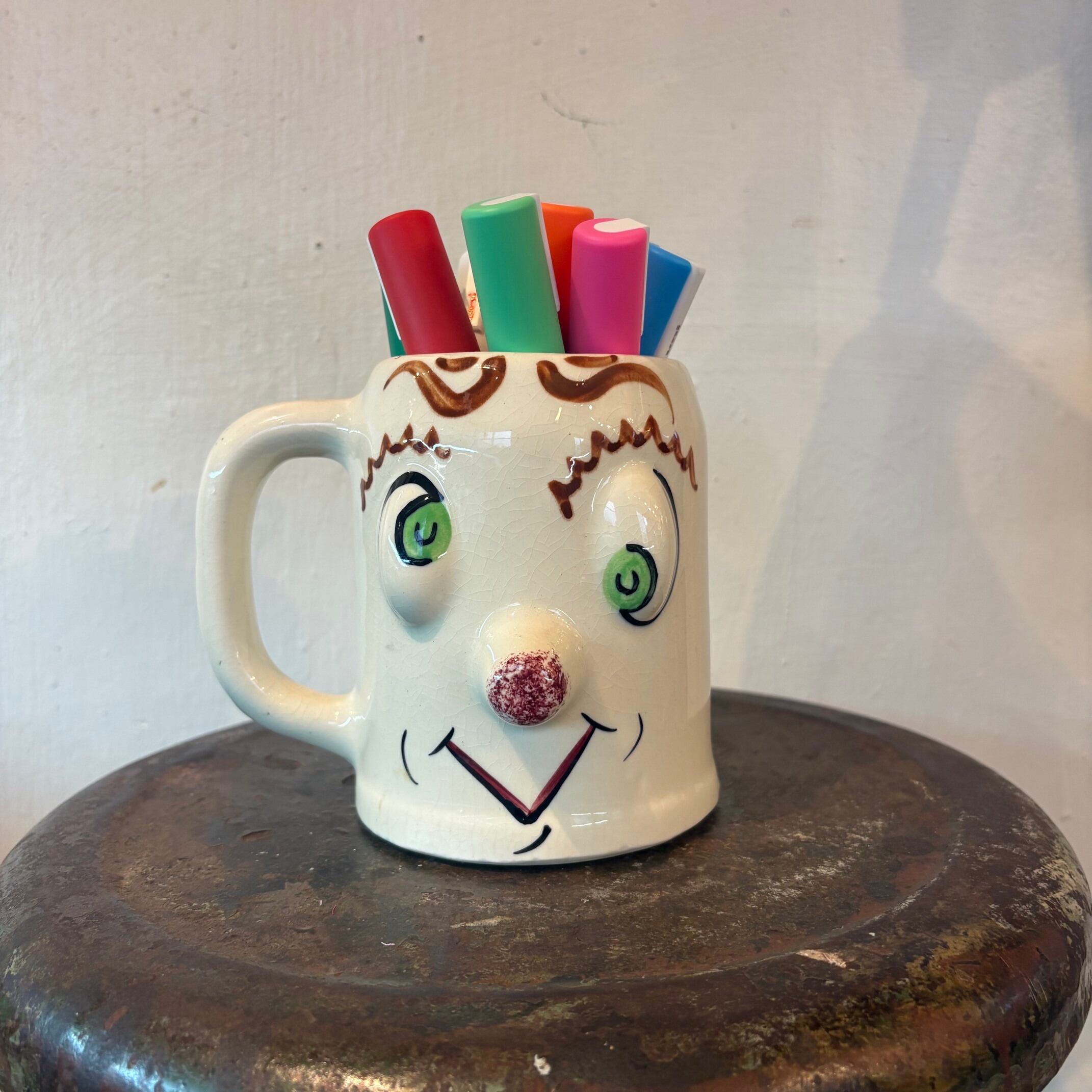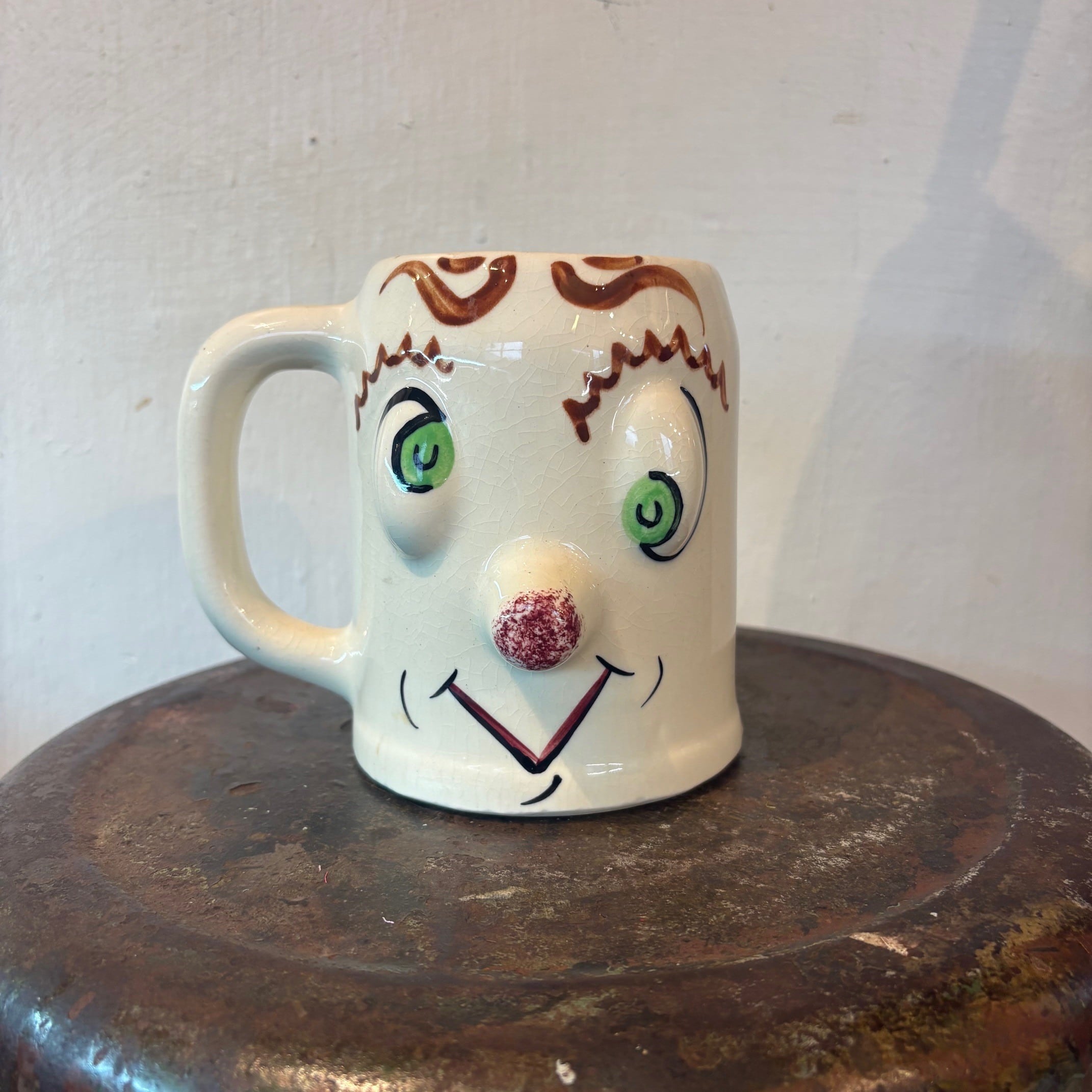 ハンドペイントで描かれた、どこか間の抜けた表情と立体的な造形でヴィンテージならではの個性が詰まったマグ。