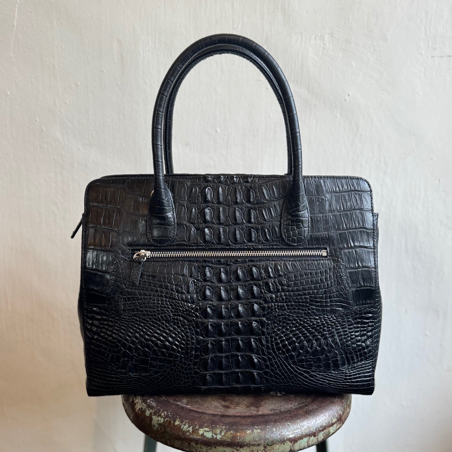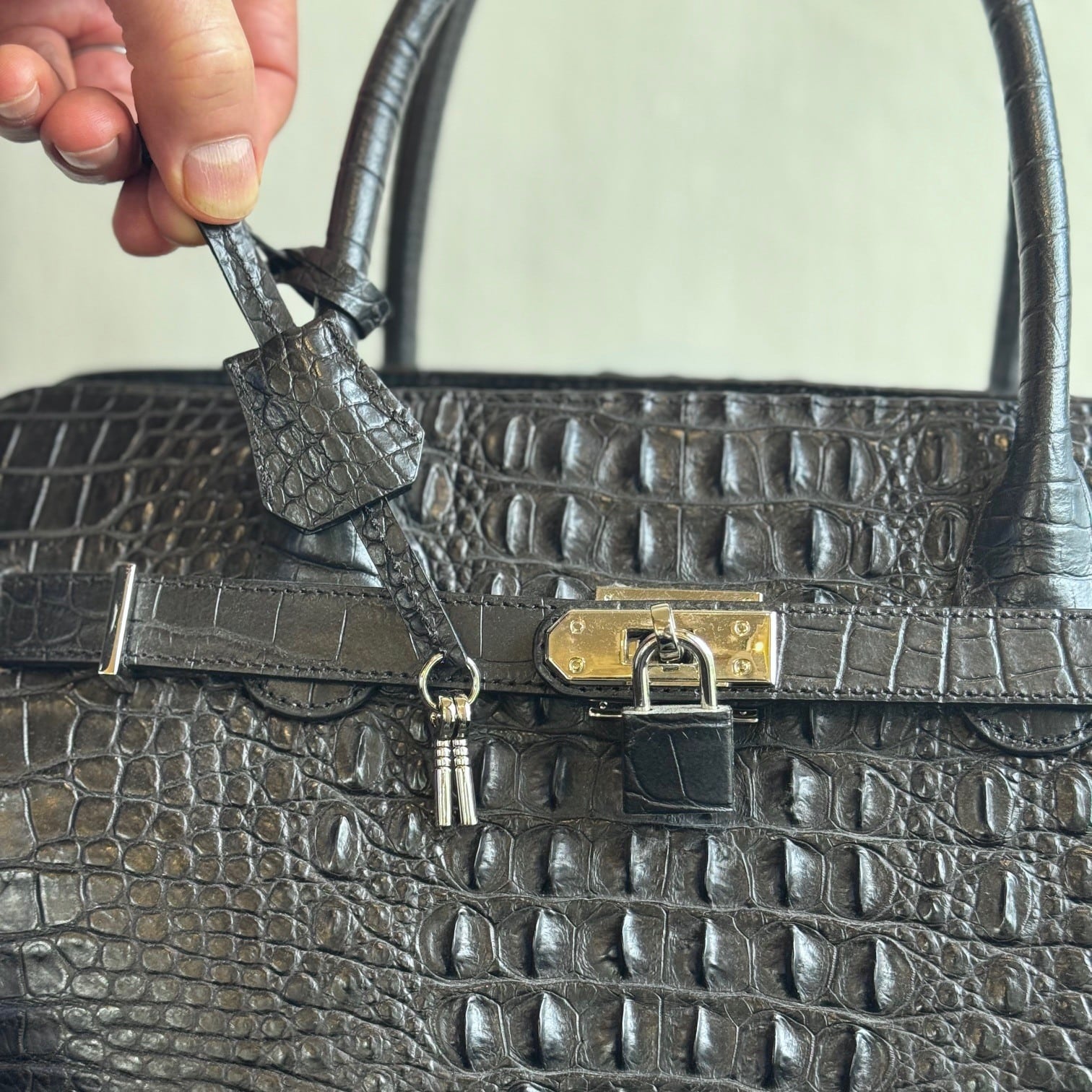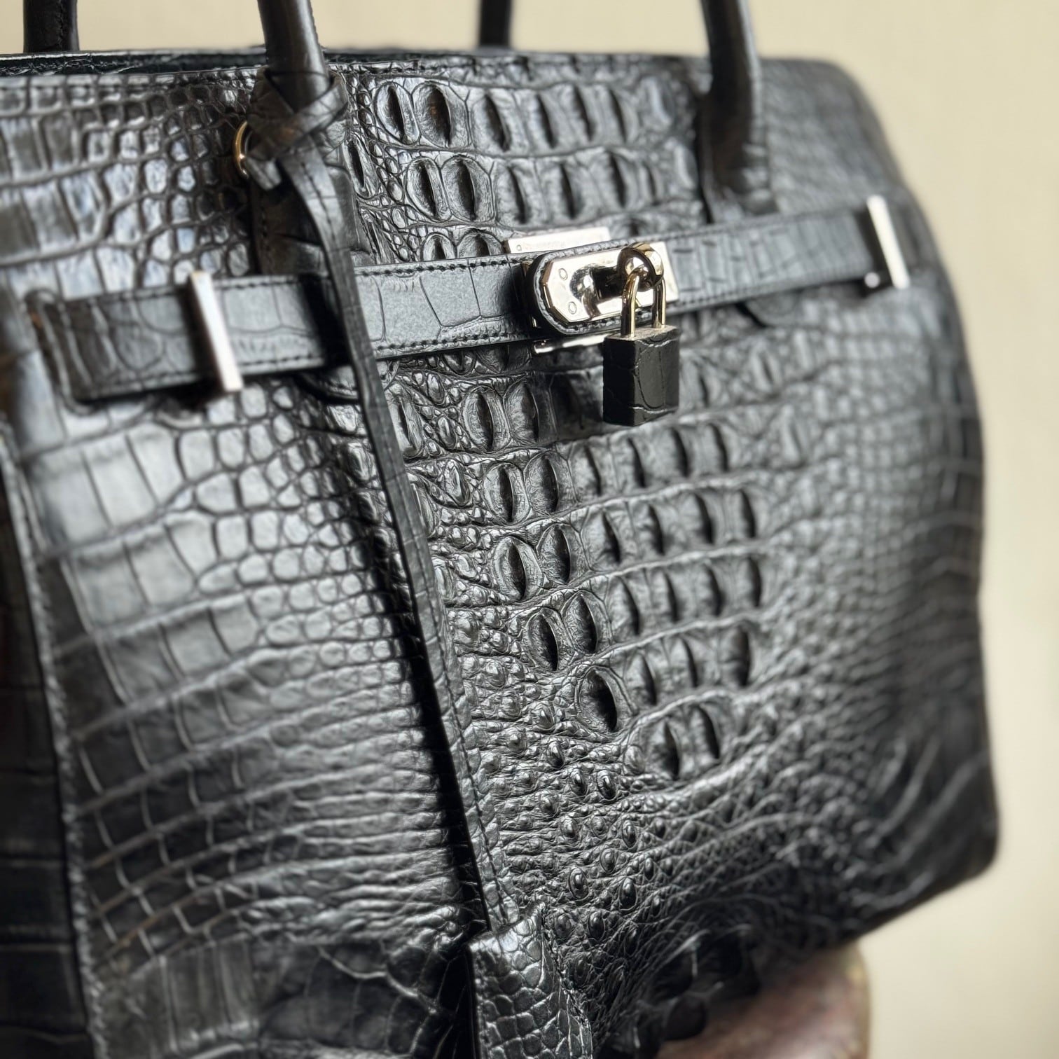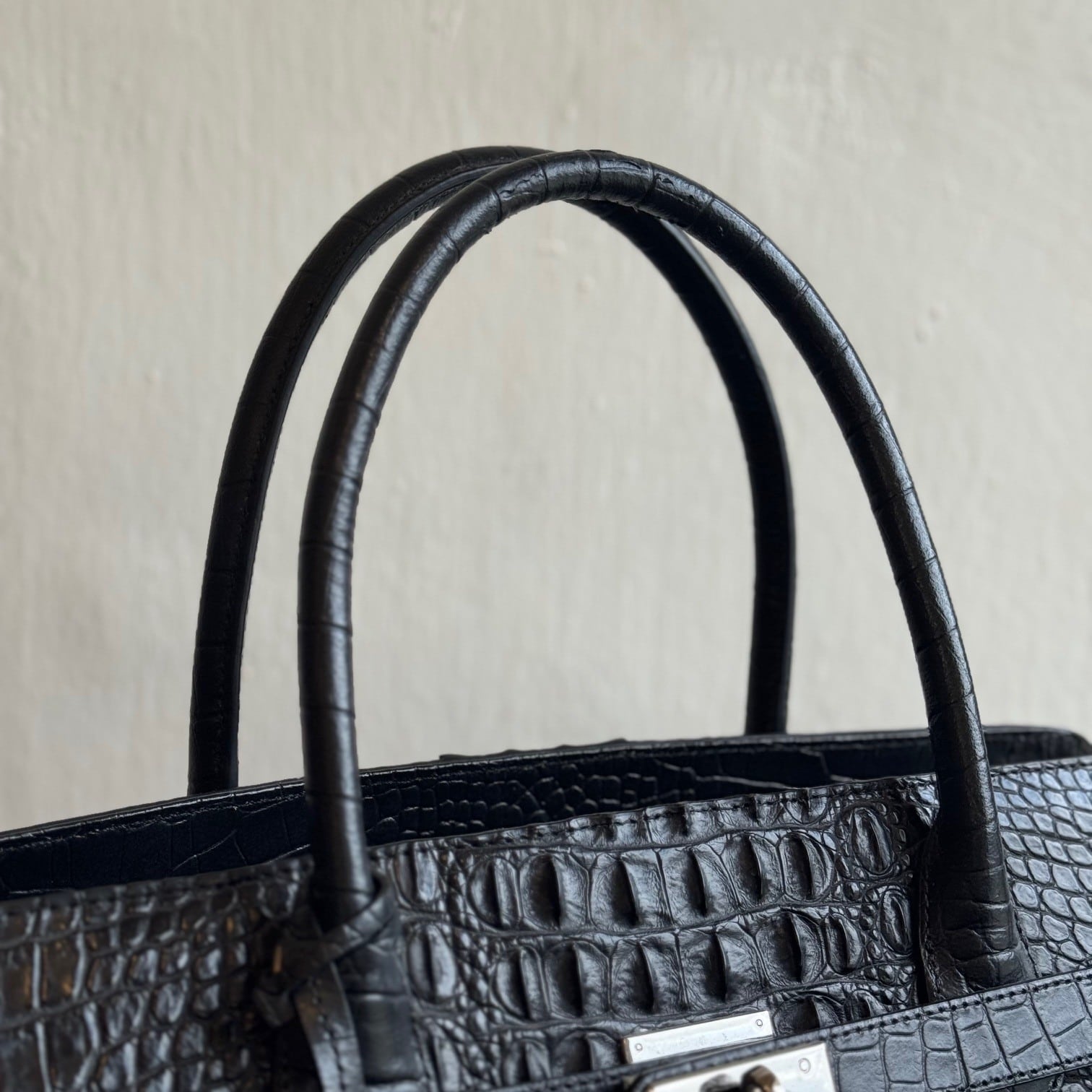 バーキンを思わせる端正なフォルムに、重厚で品のあるブラッククロコのリアルレザー。