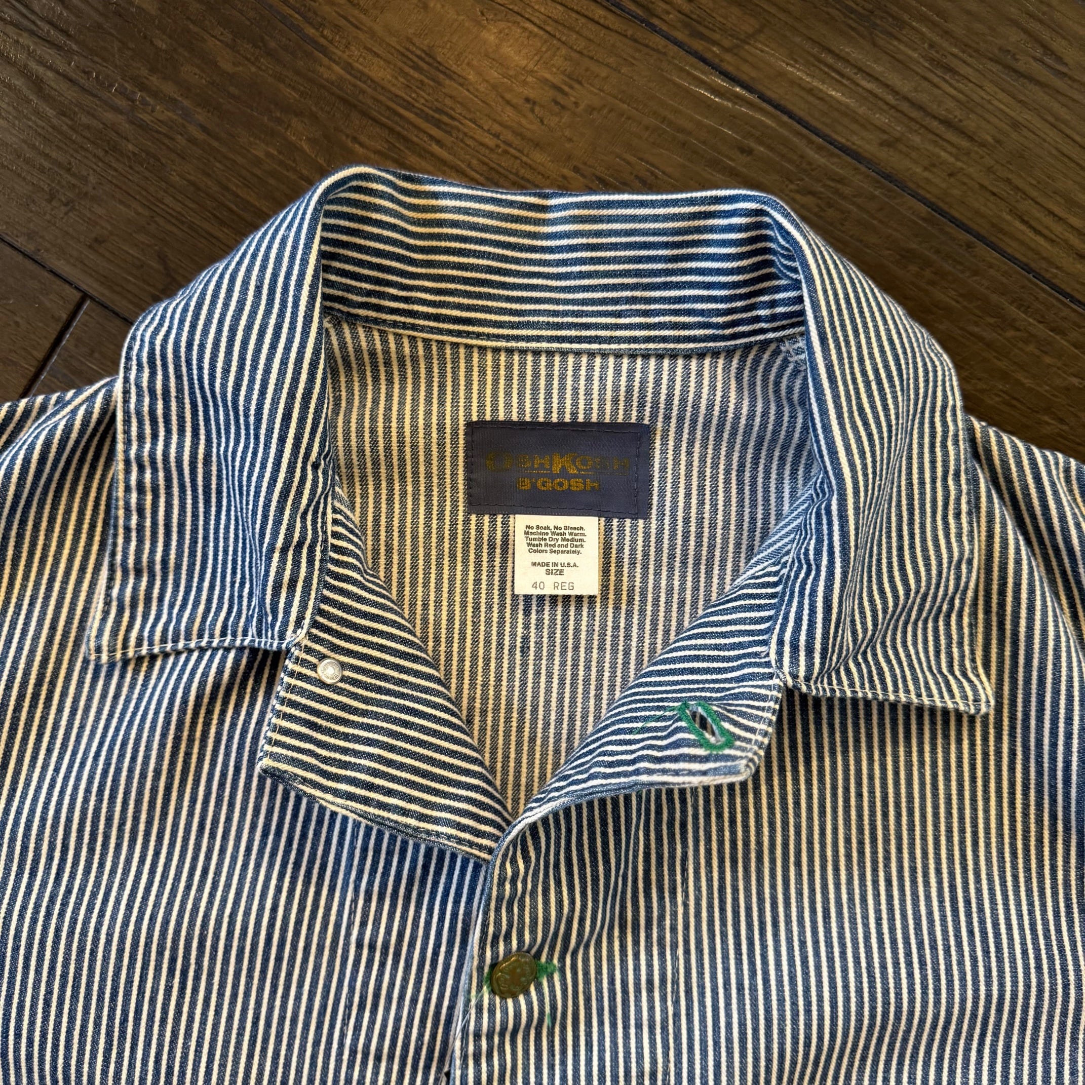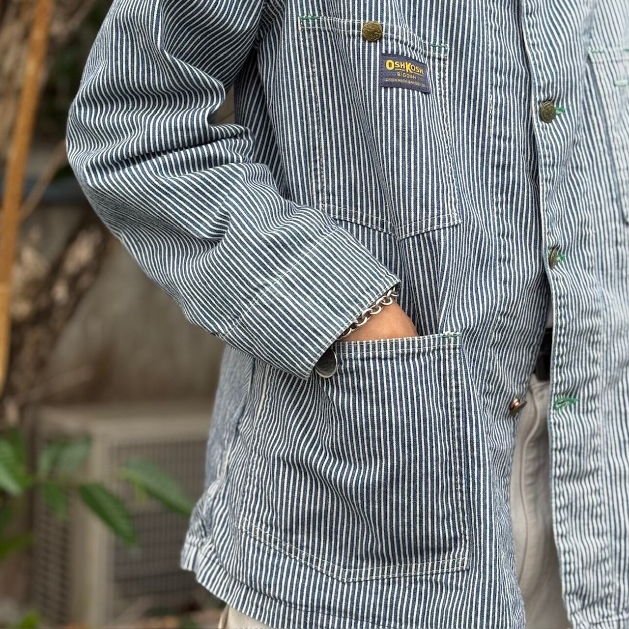 王道ヒッコリーストライプのUSA製オシュコシュ。