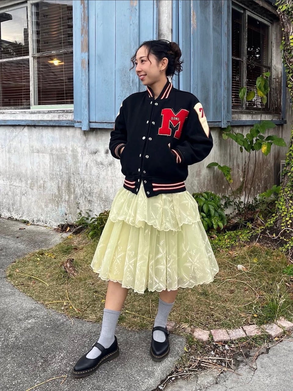 トップスの上から合わせても良し、ジャケットの下に来ても決まるワンピースです♪