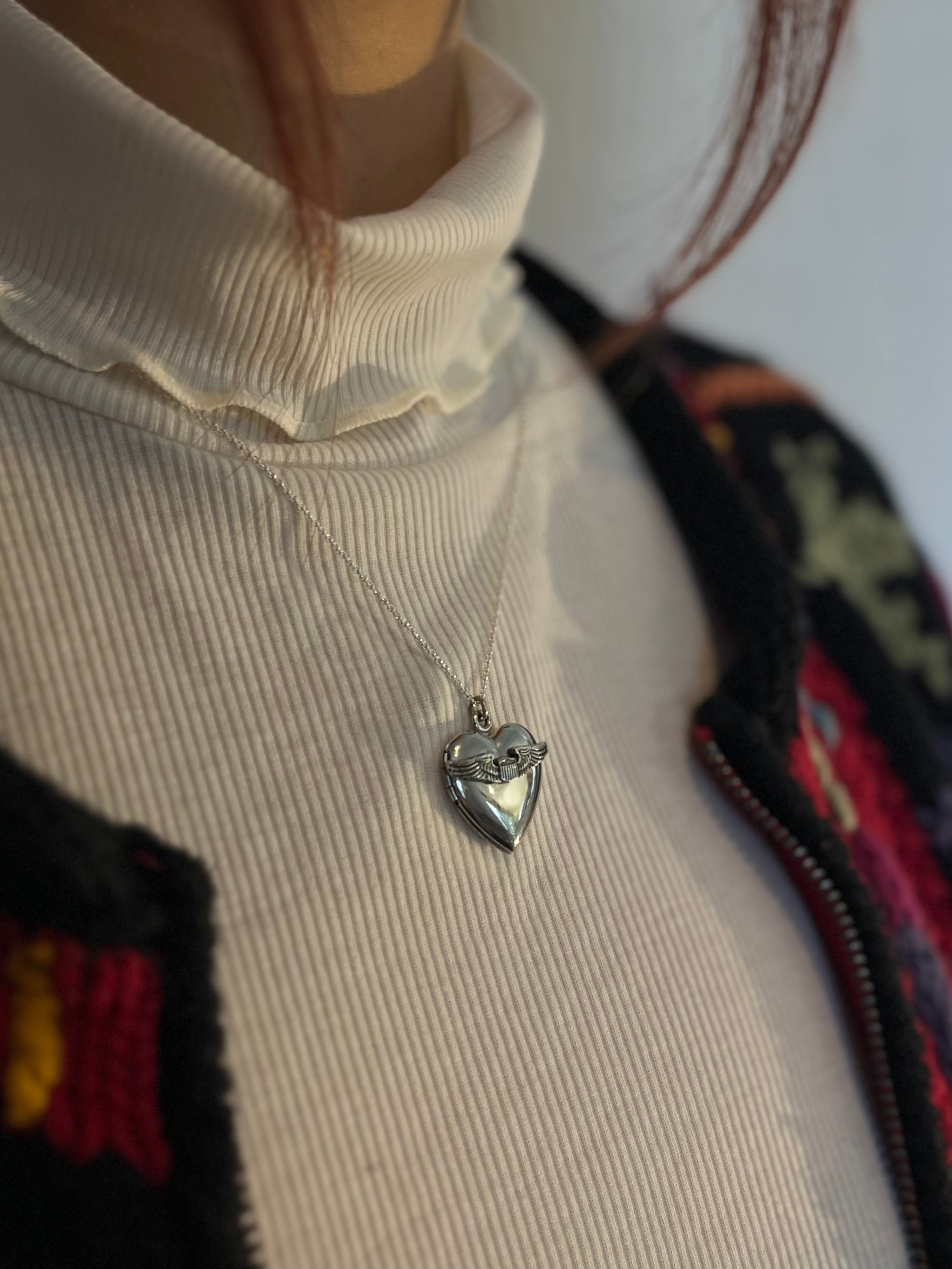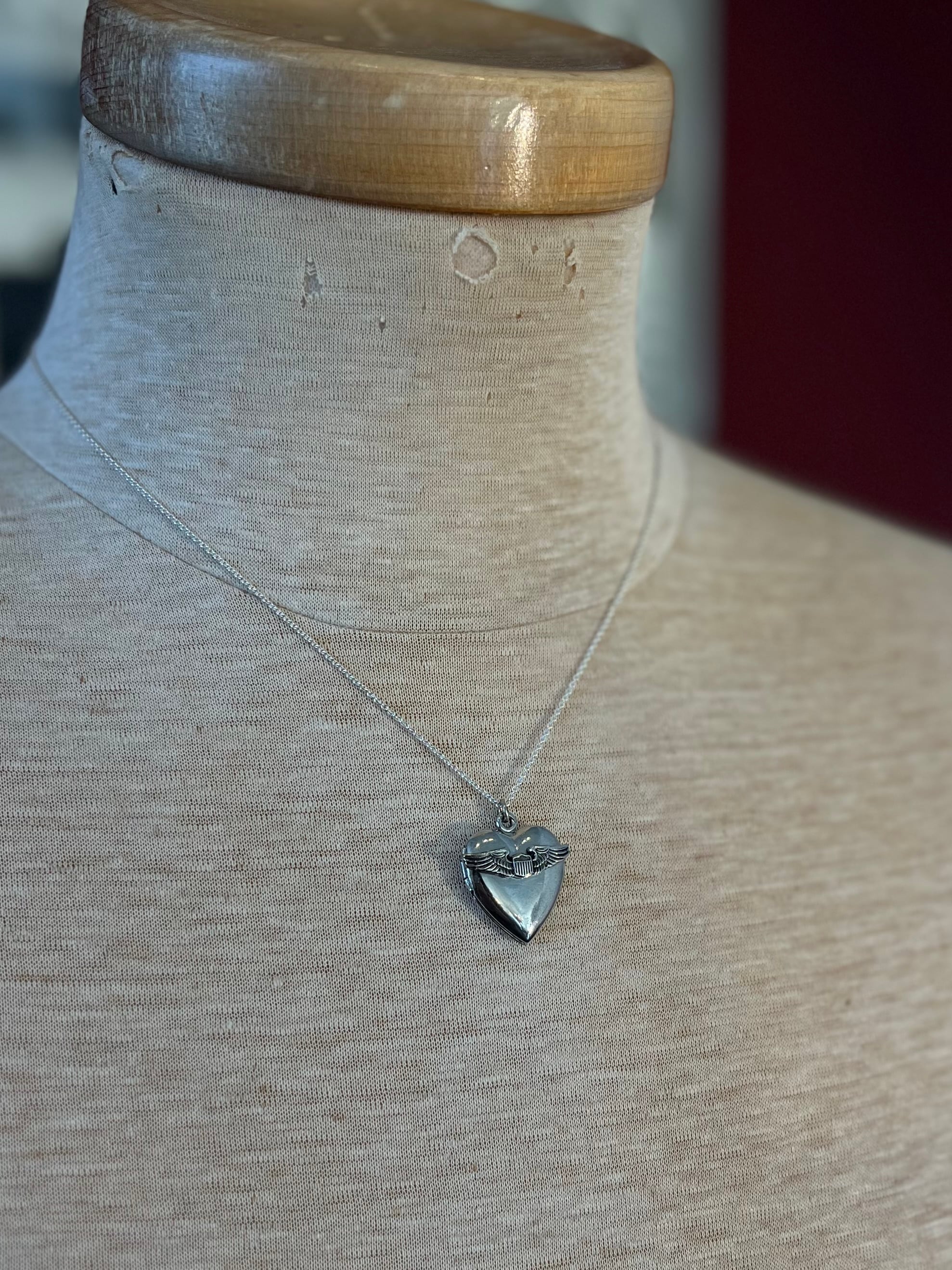 ハート中心部にはU.S. Air Force(アメリカ空軍)のシンボルマークがデザインされており、ロケットペンダント型でトップの開閉が可能です。