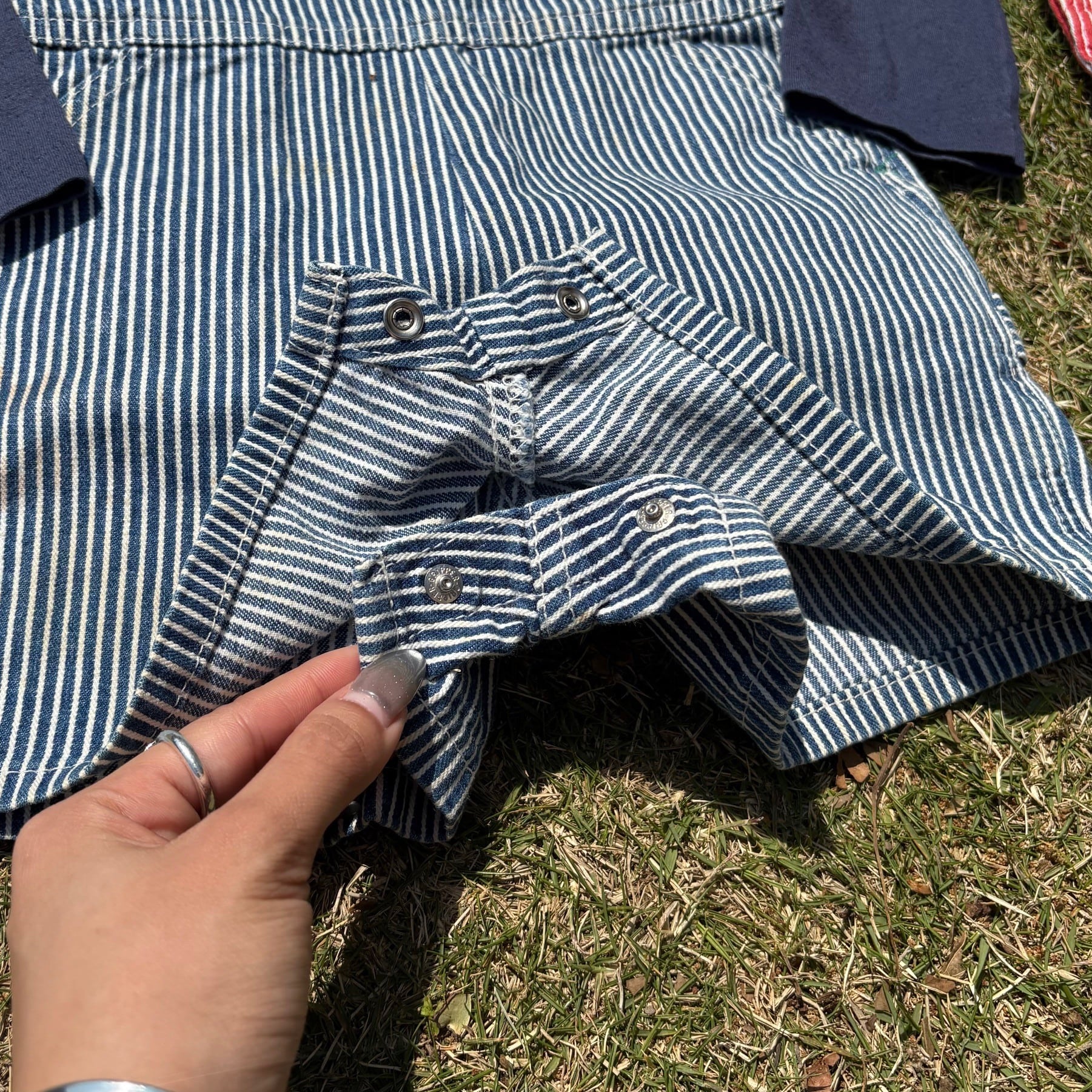 ブルーのヒッコリーストライプで、ワークウェアらしいクラシックな柄が魅力です。