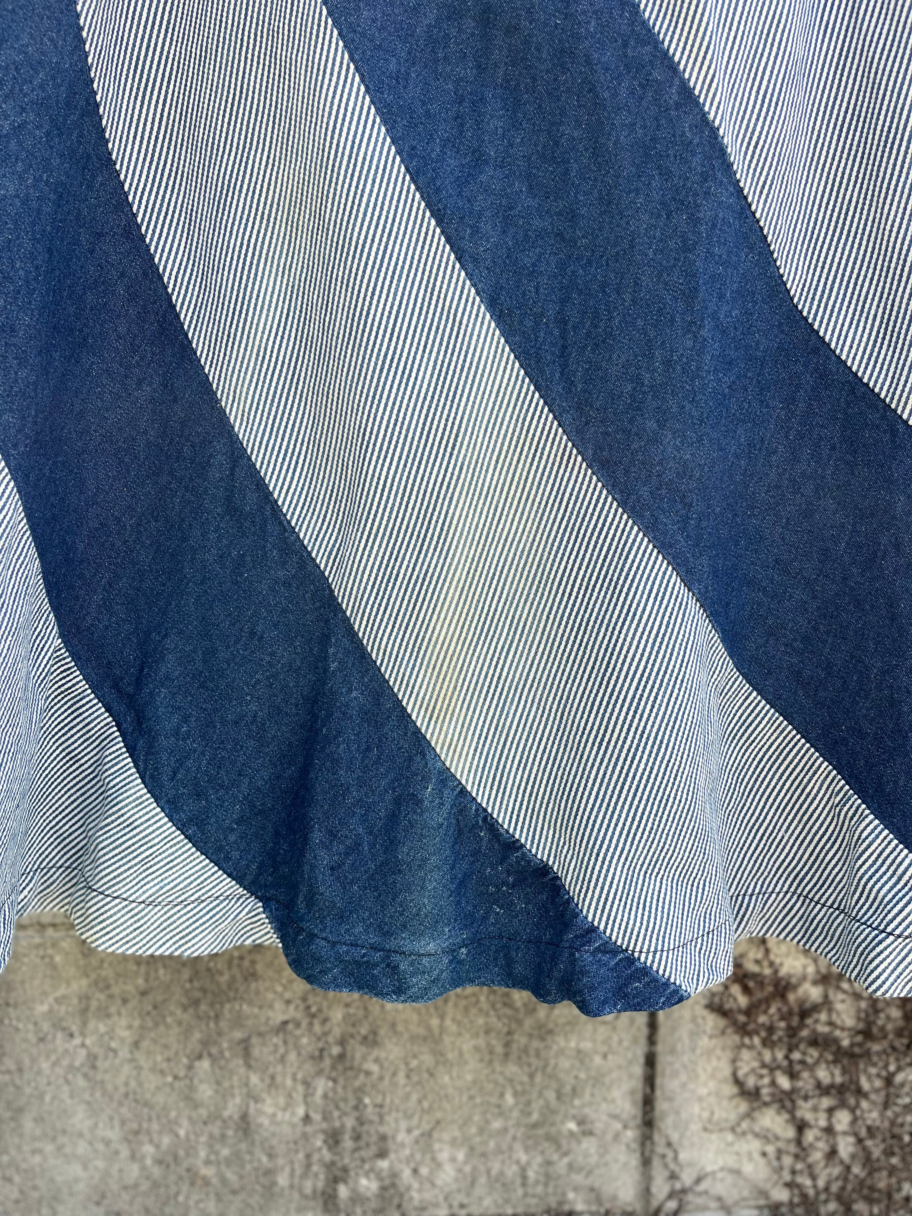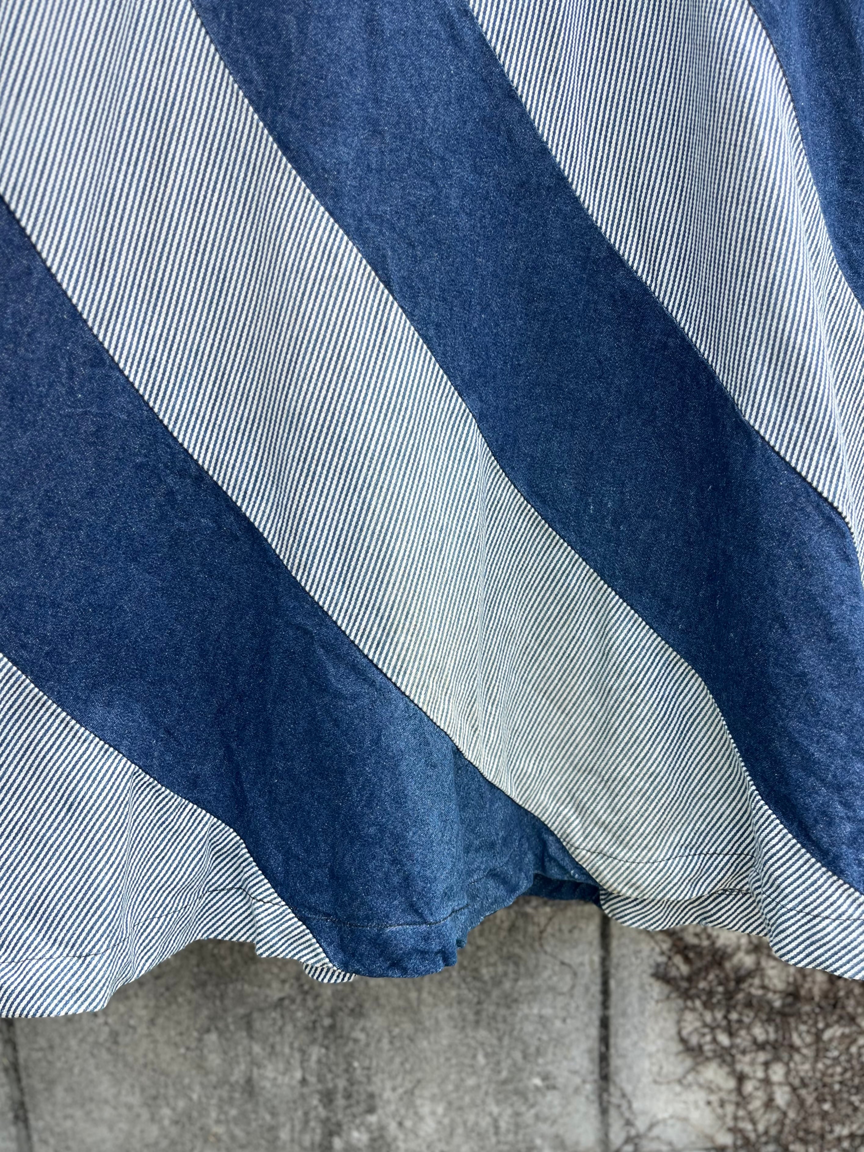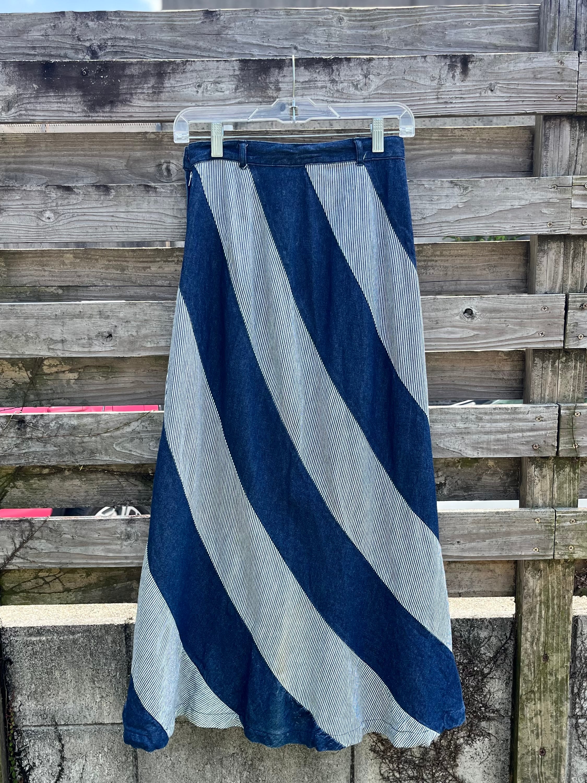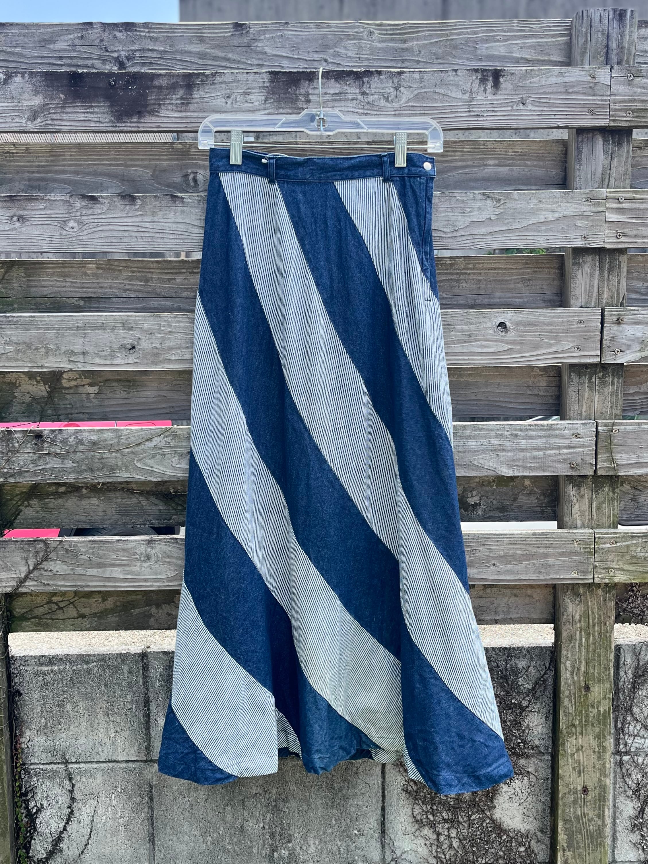 大胆な斜めストライプが目を惹くデニムロングスカート。