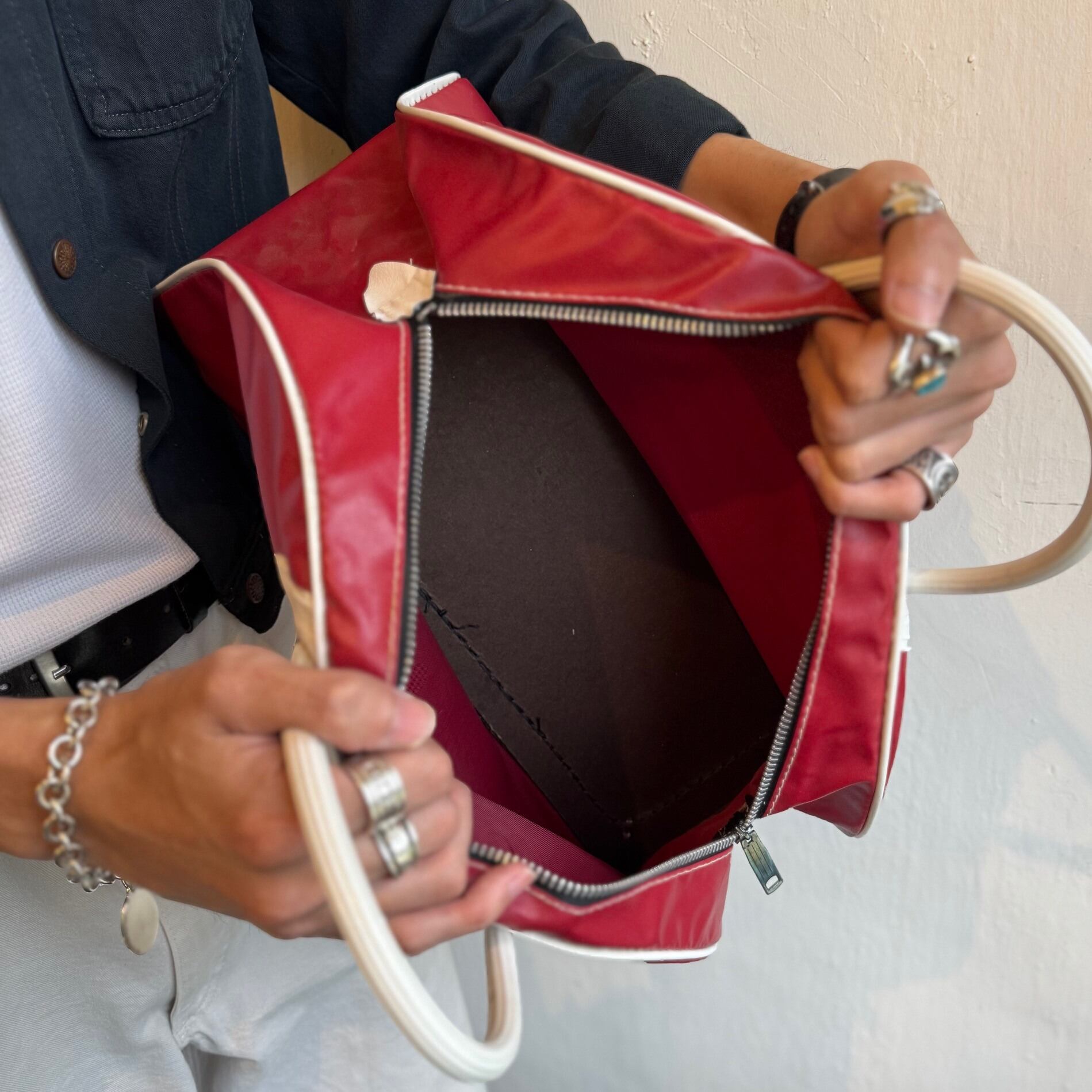 当時の旧ロゴが映える存在感に加え、ビニールレザー(PVC)特有の光沢とヤレ感が魅力。
