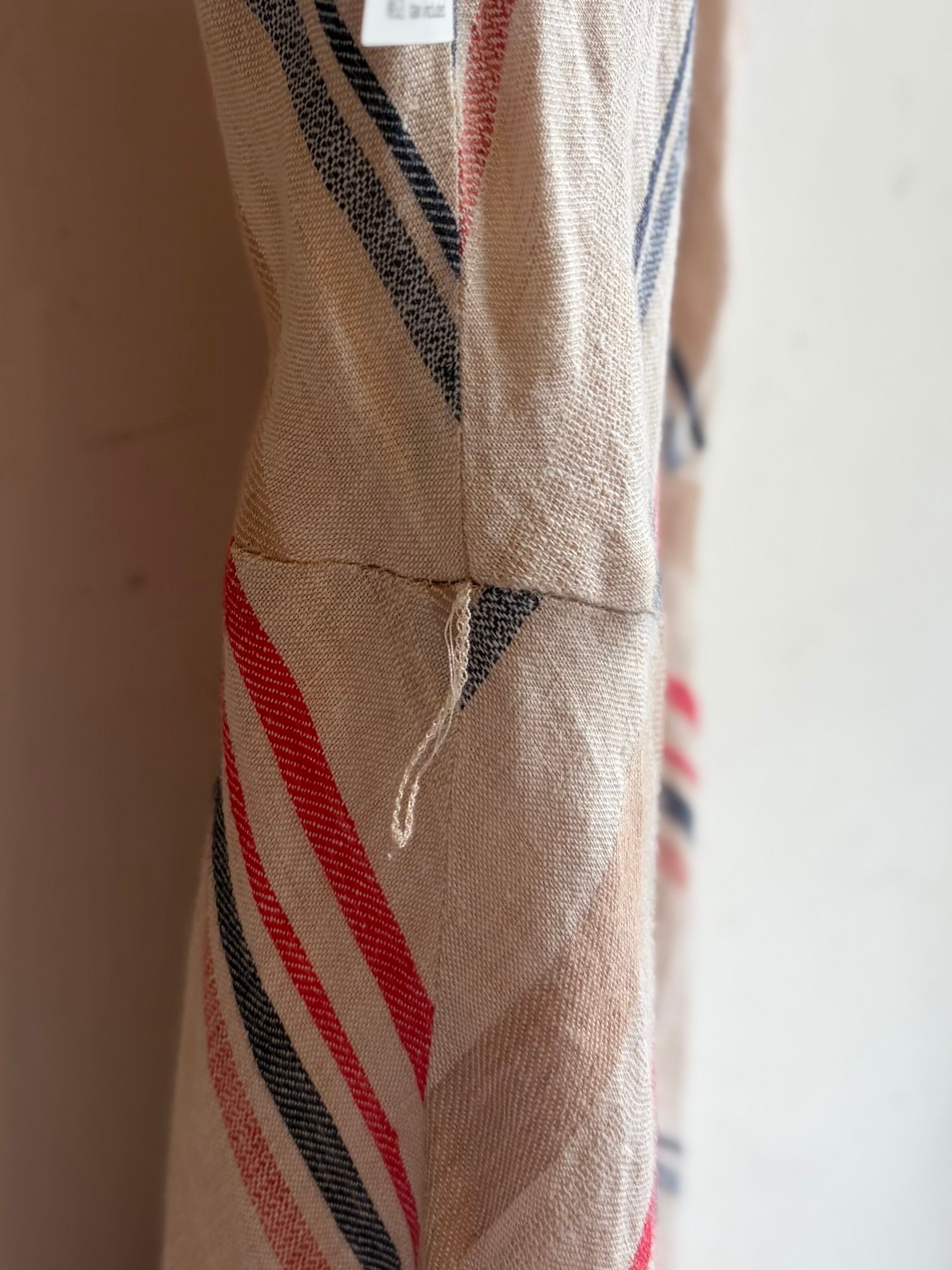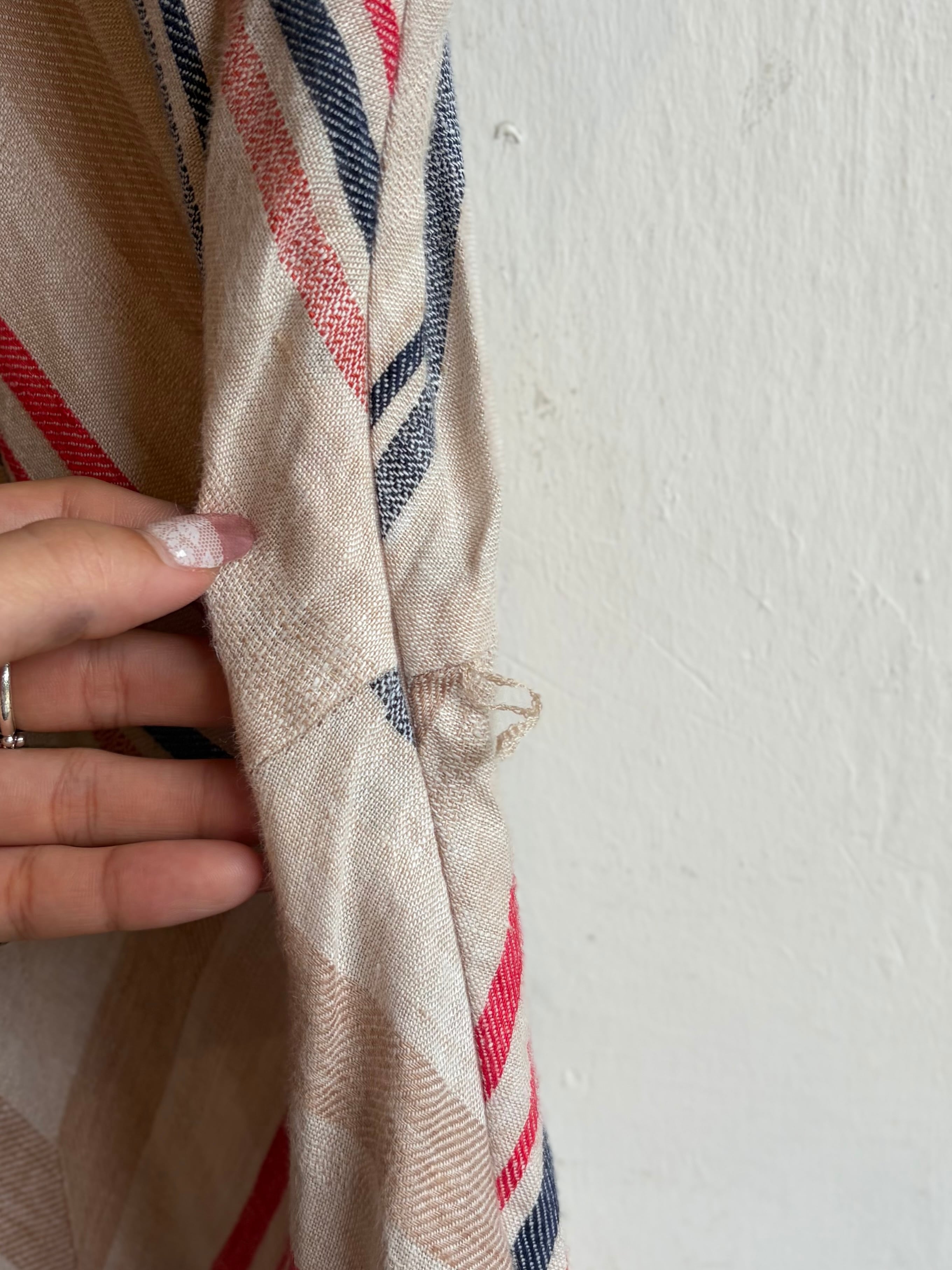 麻100%のストライプ柄ワンピースです。