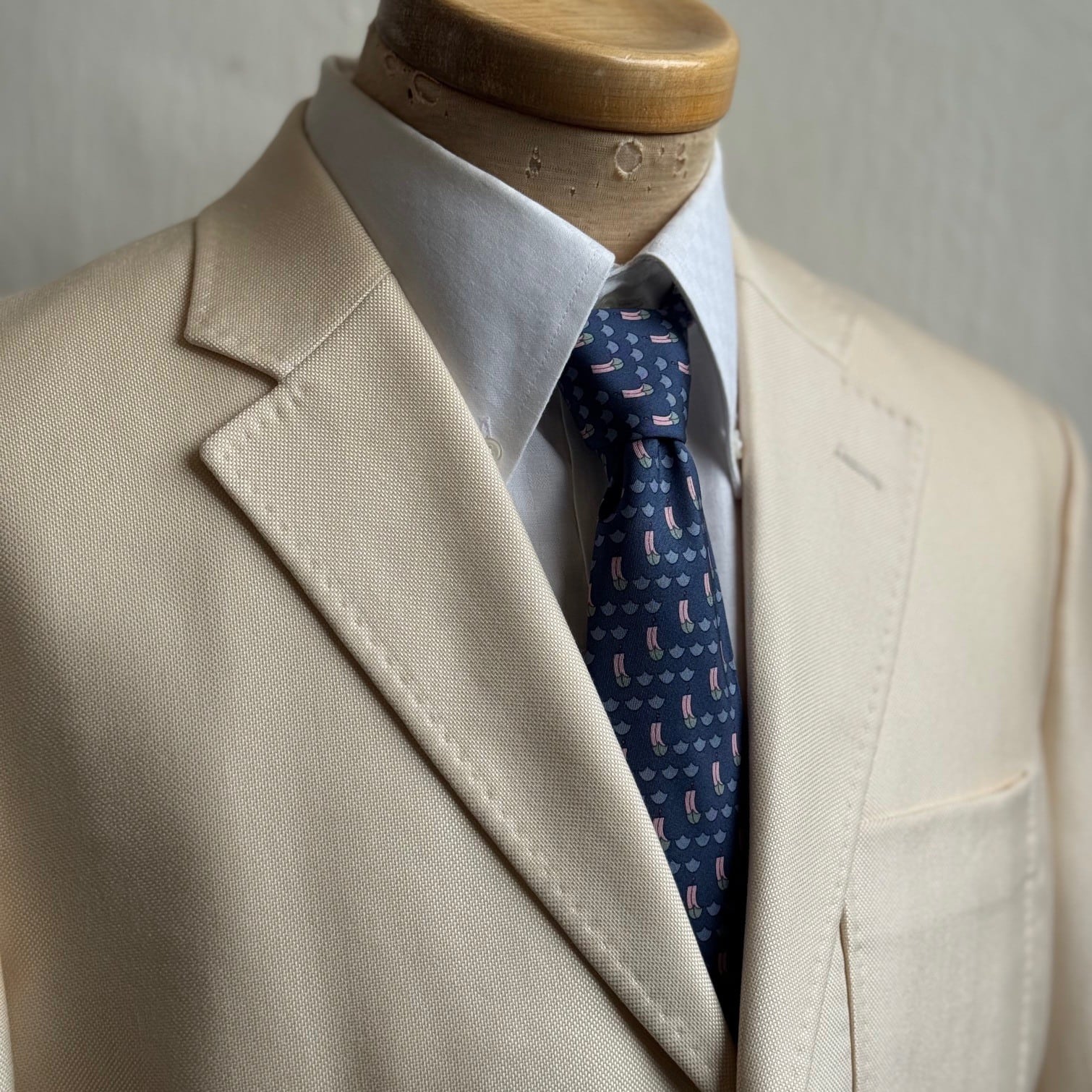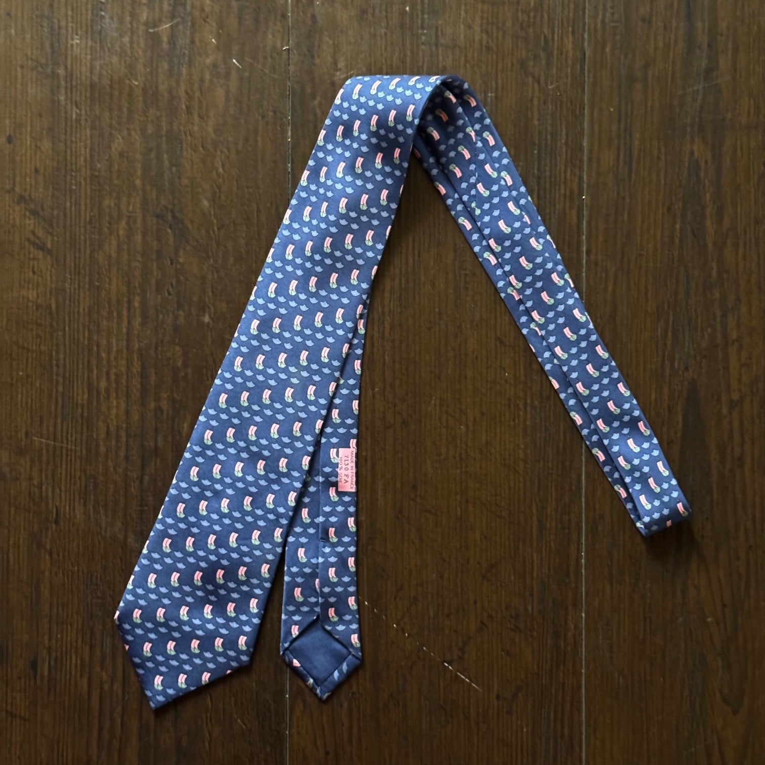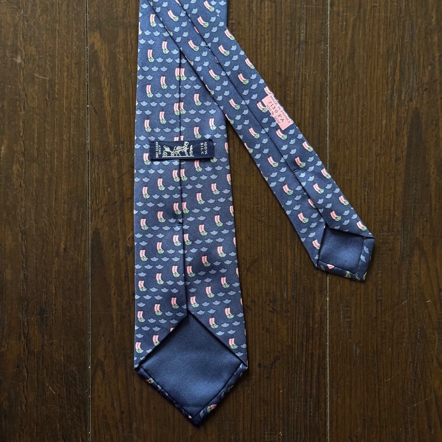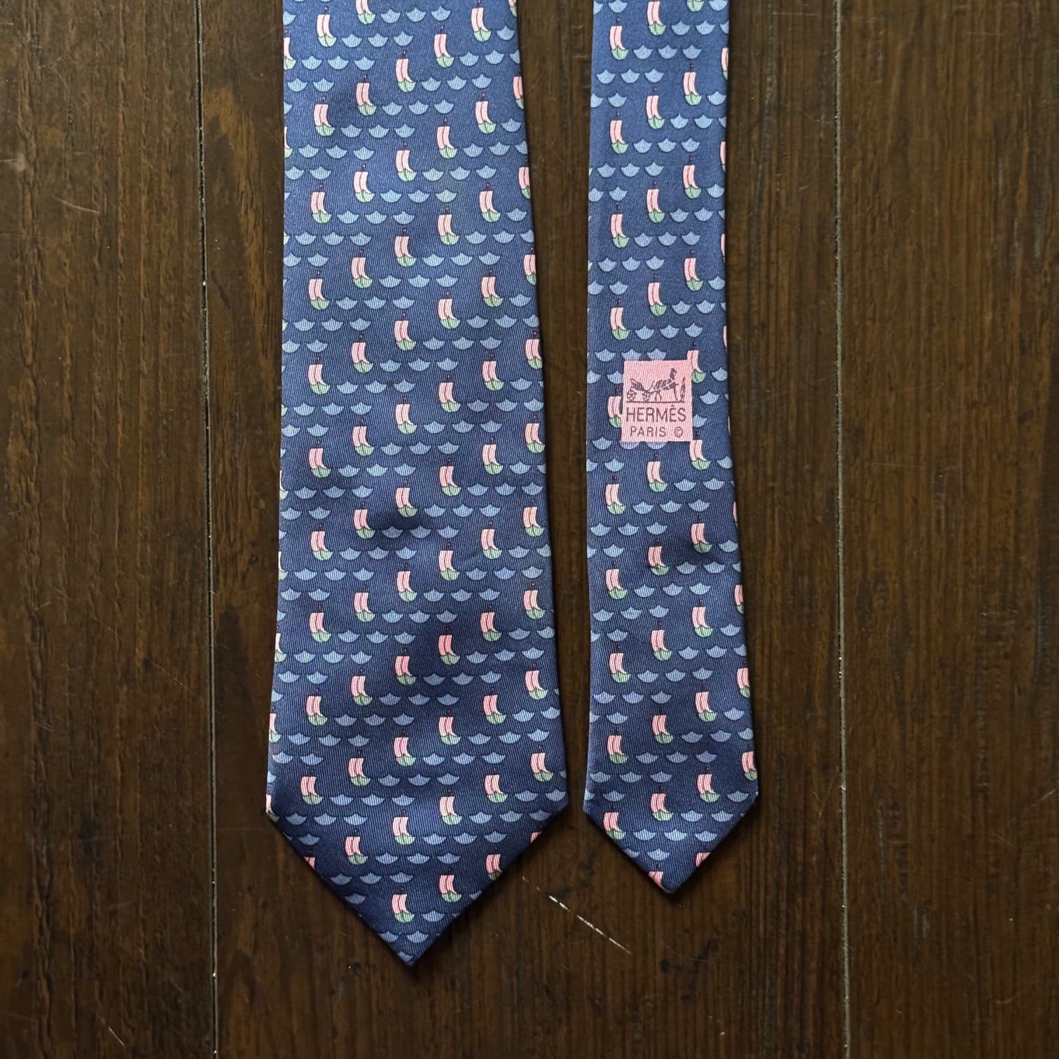 "Hermès" ネクタイ ネイビー×セイルボート総柄 Made in France