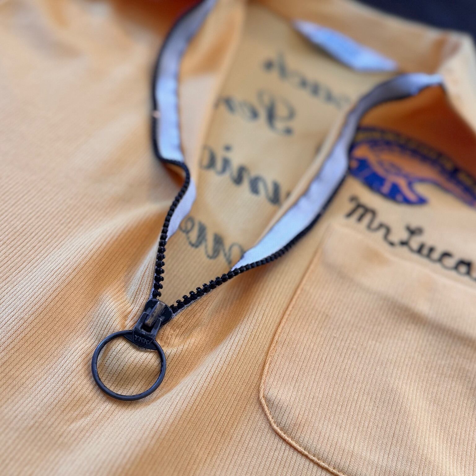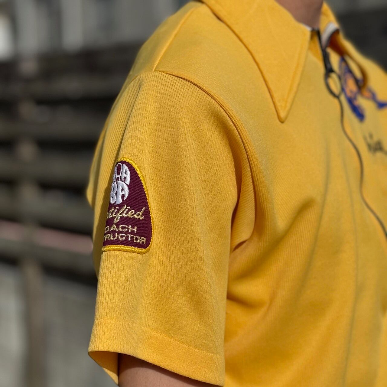右肩・左胸にワッペン、左旨ワッペン下にチェーンステッチ刺繍、バックにはプリントが施されております。